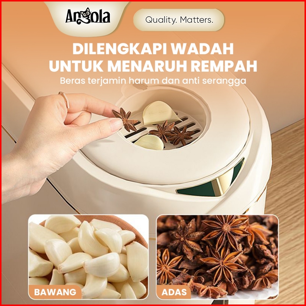Angola Tempat Beras Otomatis 10kg E29-e31 Dispenser Beras Food Grade Anti Kutu Pencet Otomatis