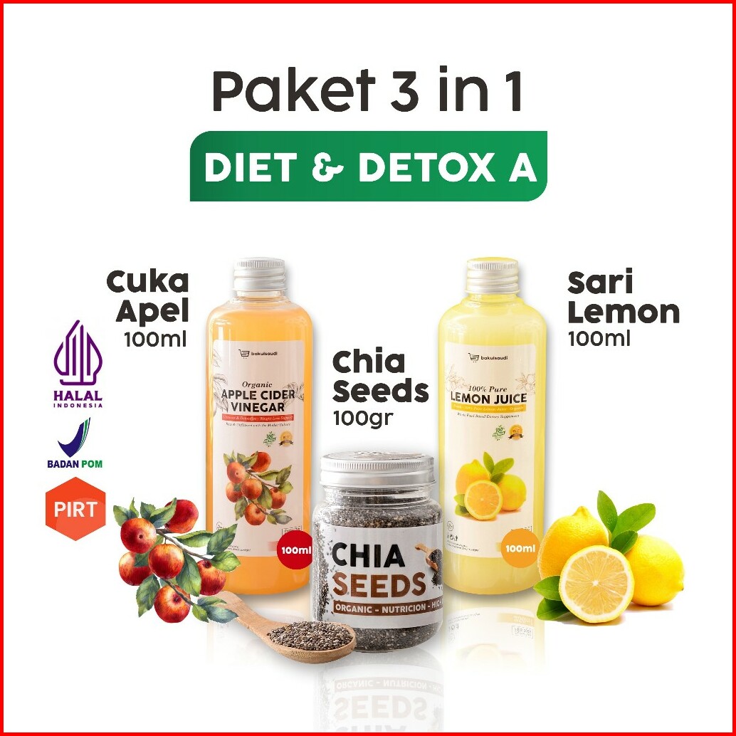 Paket Diet Detoks Detox Organic 3in1 - Chia Seeds Sari Lemon Cuka Apel Organik Apple Cider Vinegar