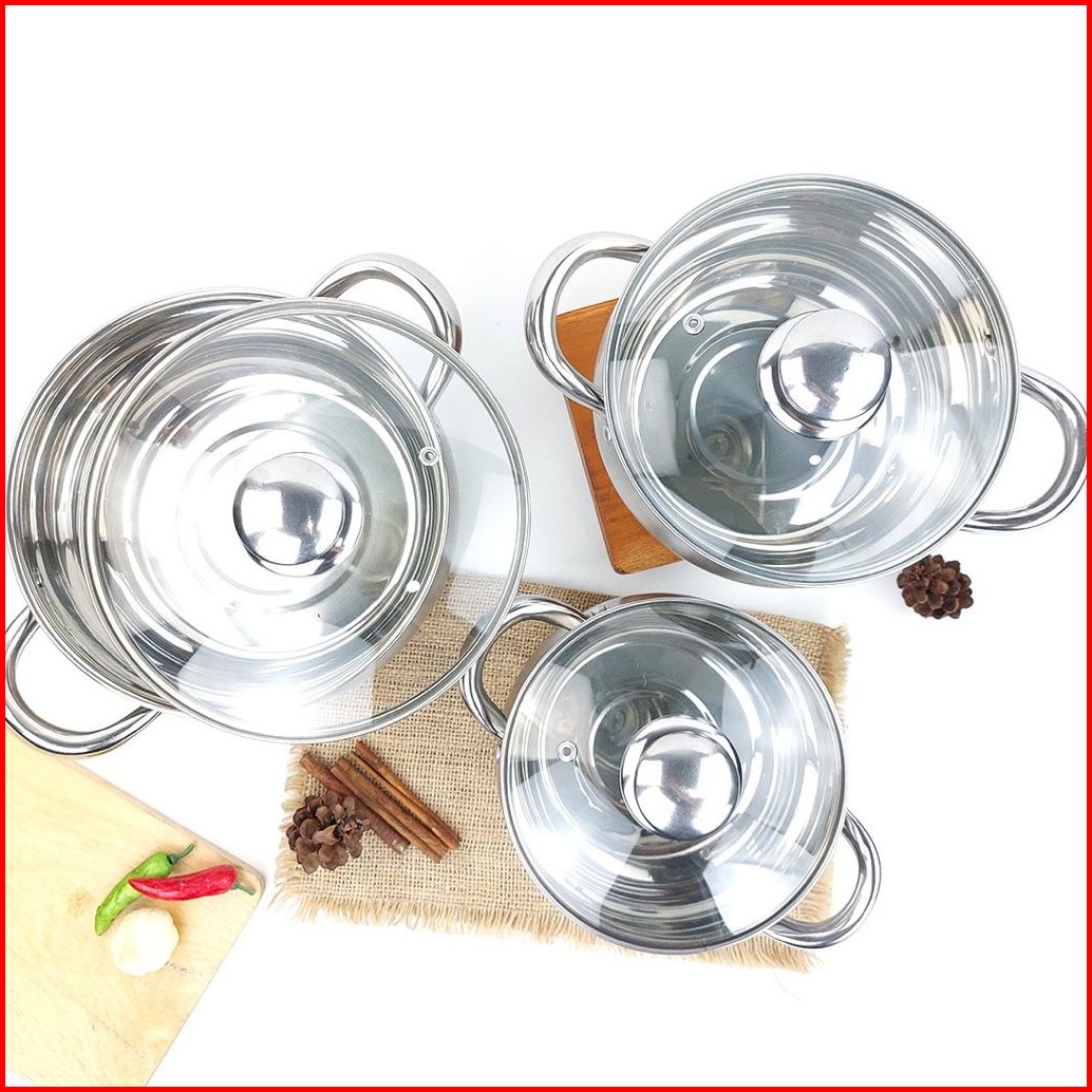 Top100 - Panci Labu Panci Sop Panci Rebus Panci Tutup Kaca Panci Stainless Steel Ukuran 16 18 20 Cm Bahan Premium Berkua