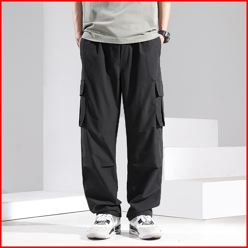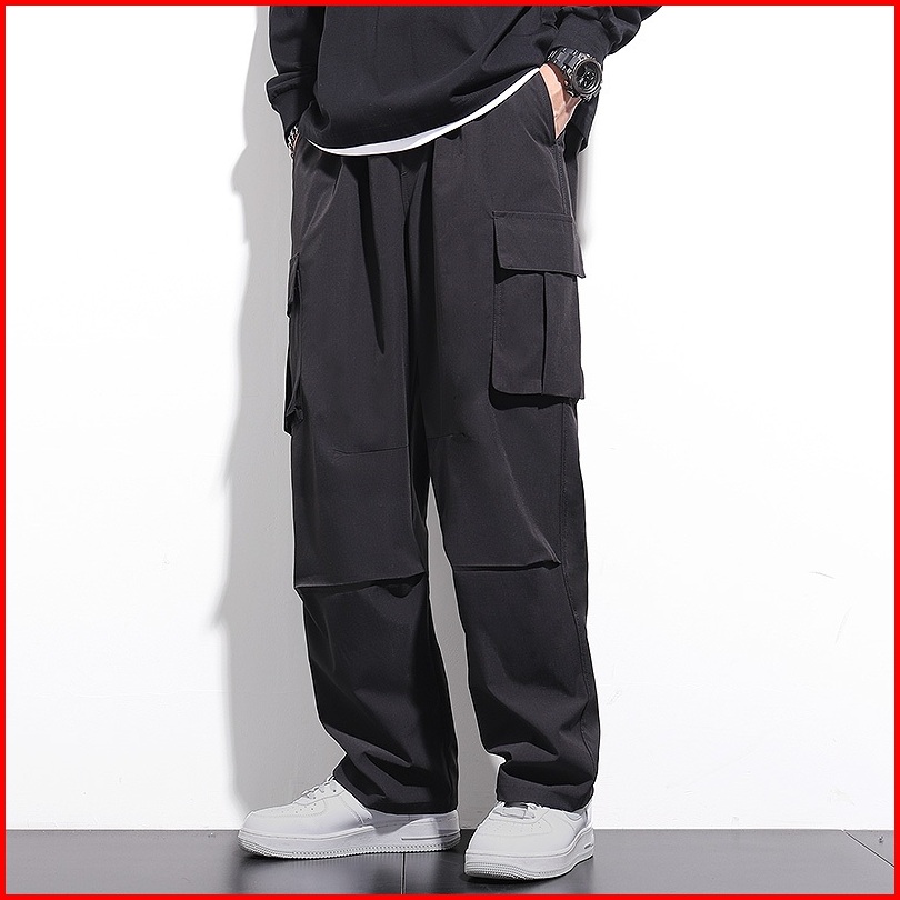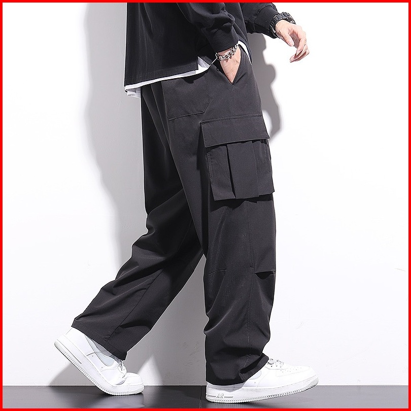 Celana Cargo Pria Oversize Longgar Fashion Baggy Pants Korean Style Sutra Es Casual Celana Kulot Cowok Dewasa Kargo Hita