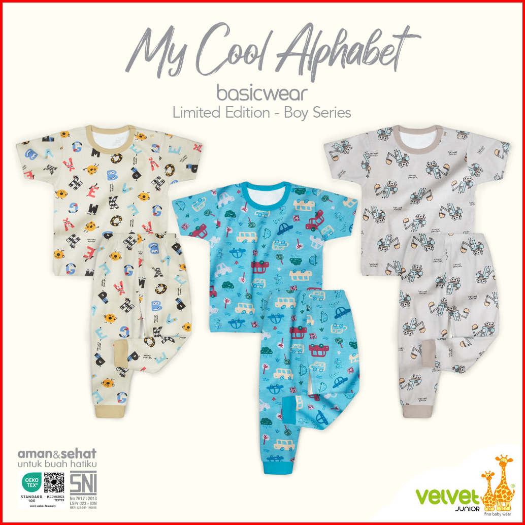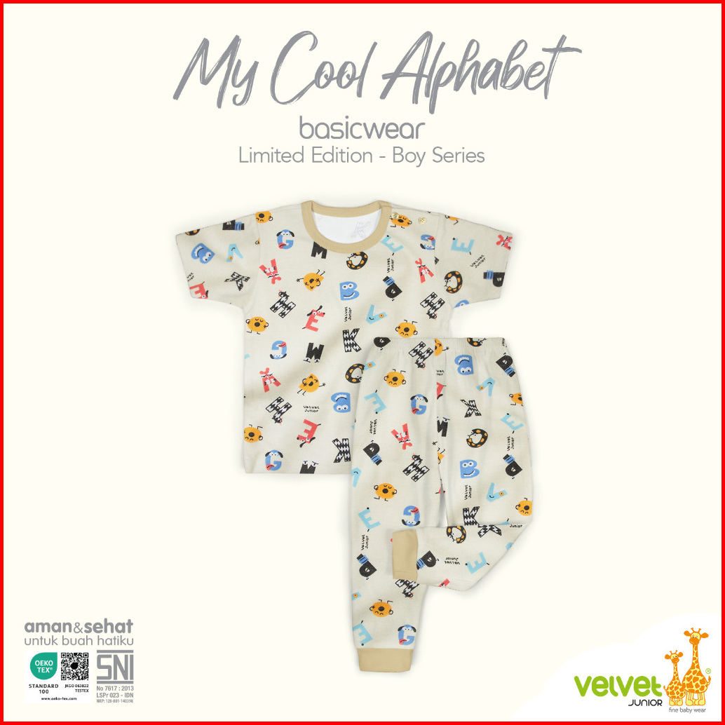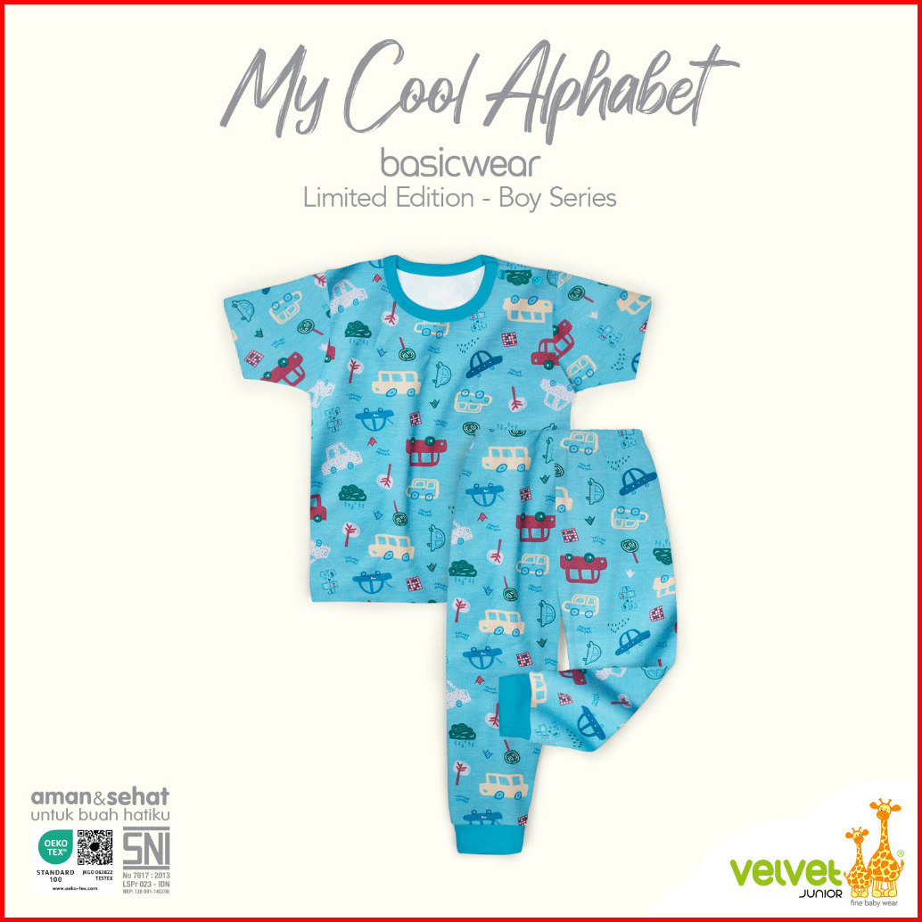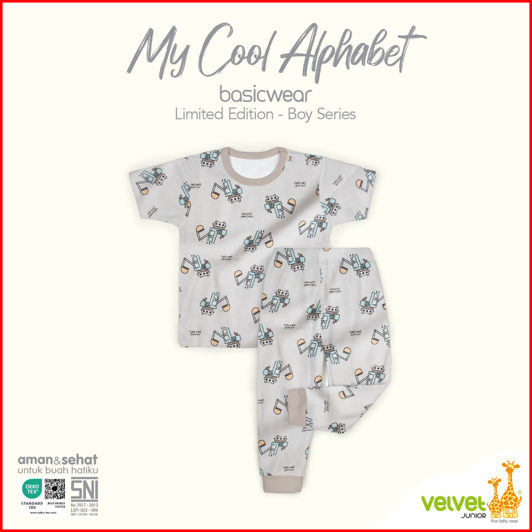 Velvet Junior Setelan Limited Dreamwear Kancing Pundak Pendek Celana Panjang - Lil Earth Movers My Cool Alphabeth