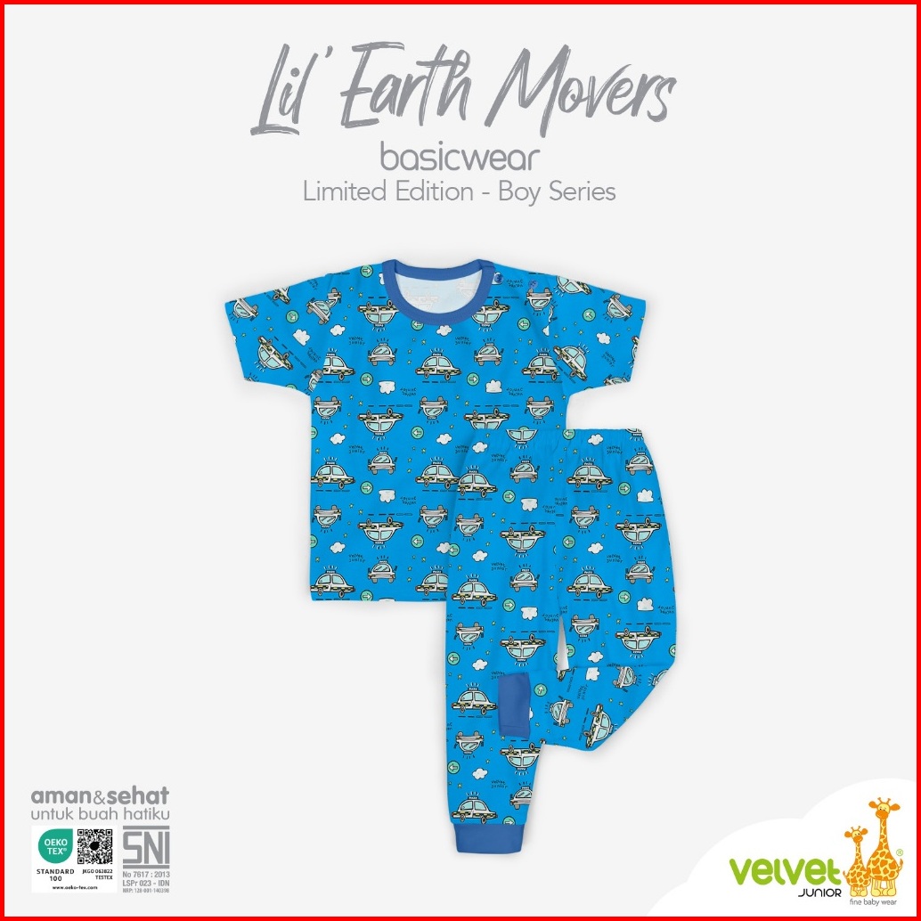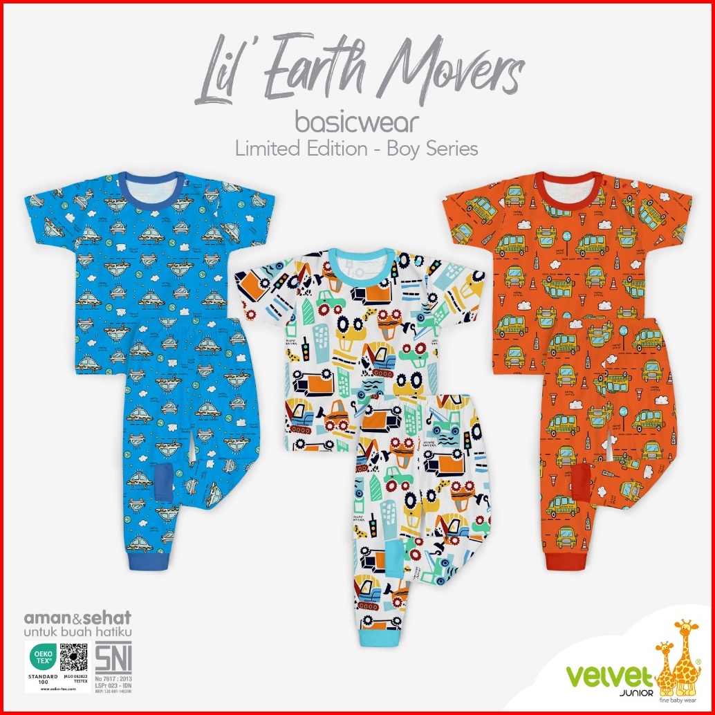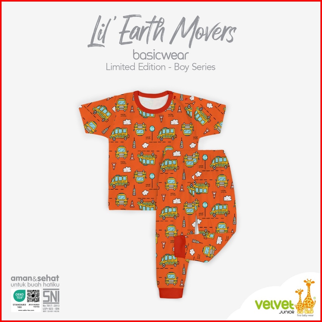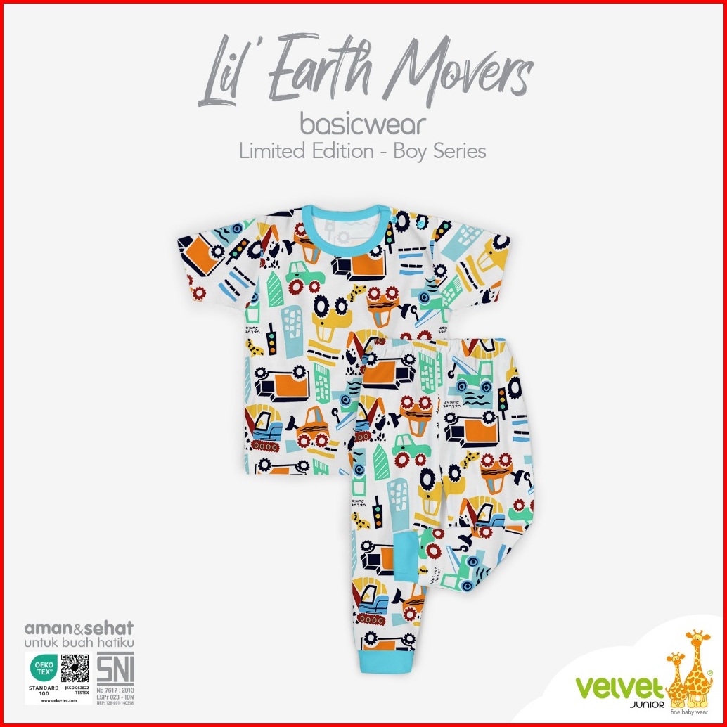 Velvet Junior Setelan Limited Dreamwear Kancing Pundak Pendek Celana Panjang - Lil Earth Movers My Cool Alphabeth