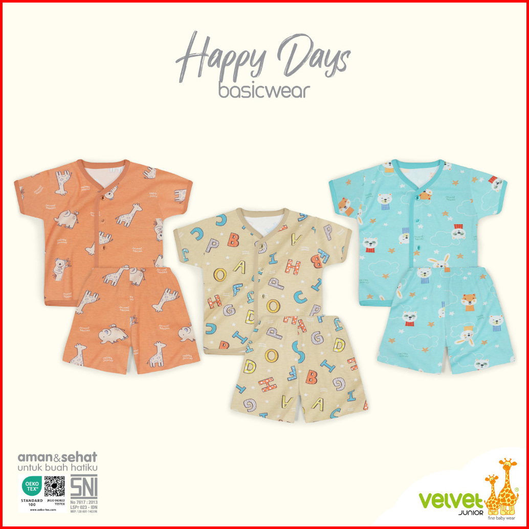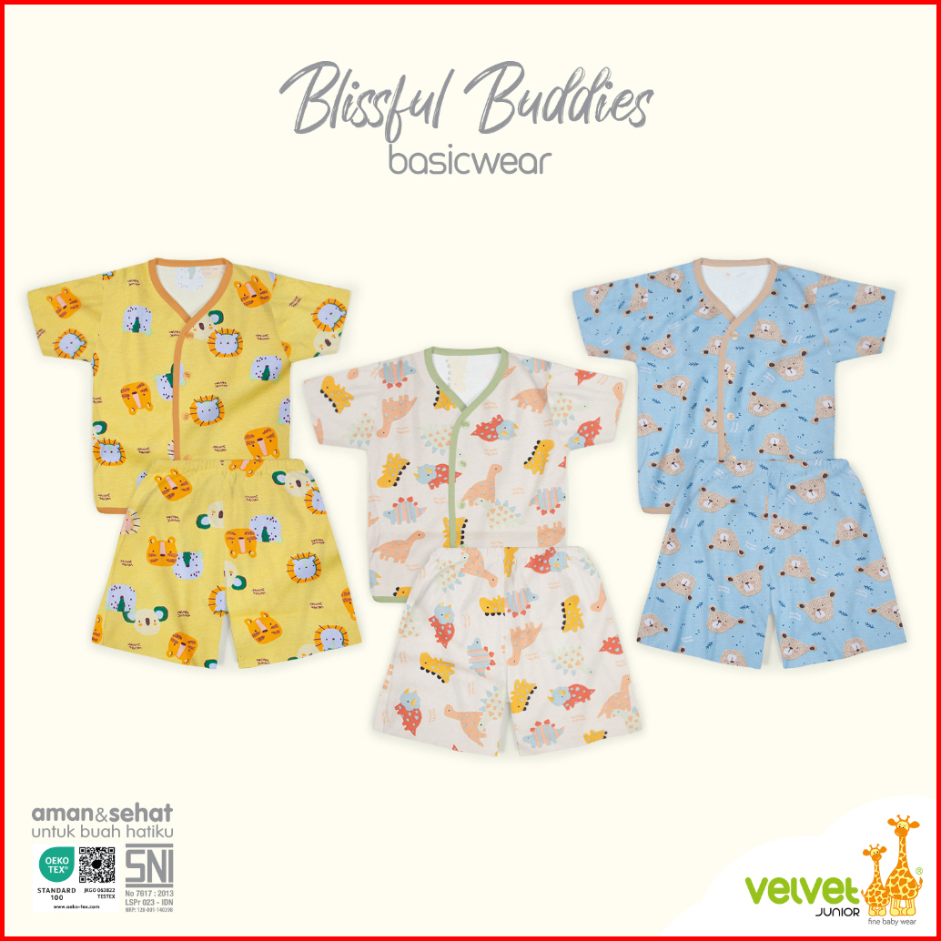 Velvet Junior Setelan Kancing Tengah Celana Pendek - Basicwear Blissful Buddies Happy Days Endearing
