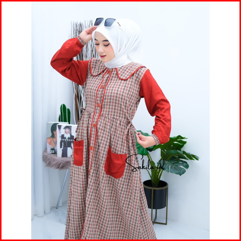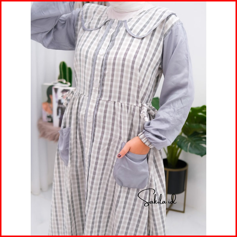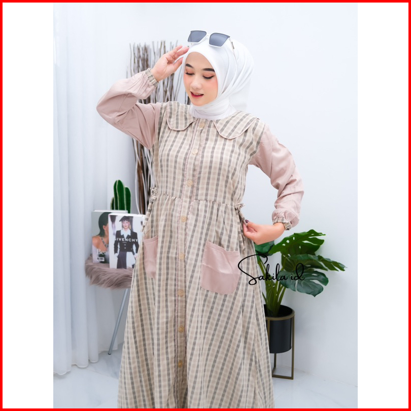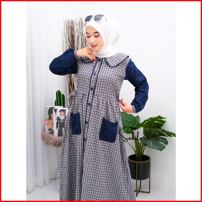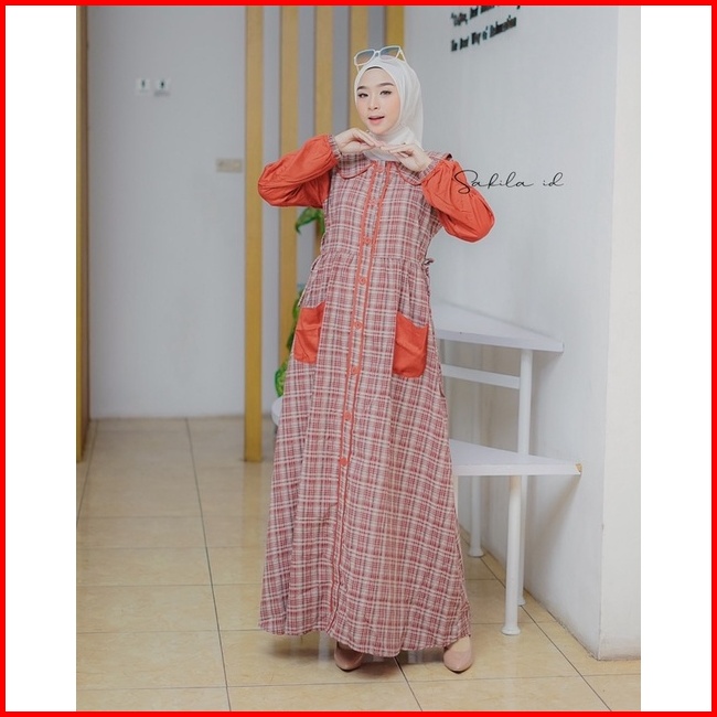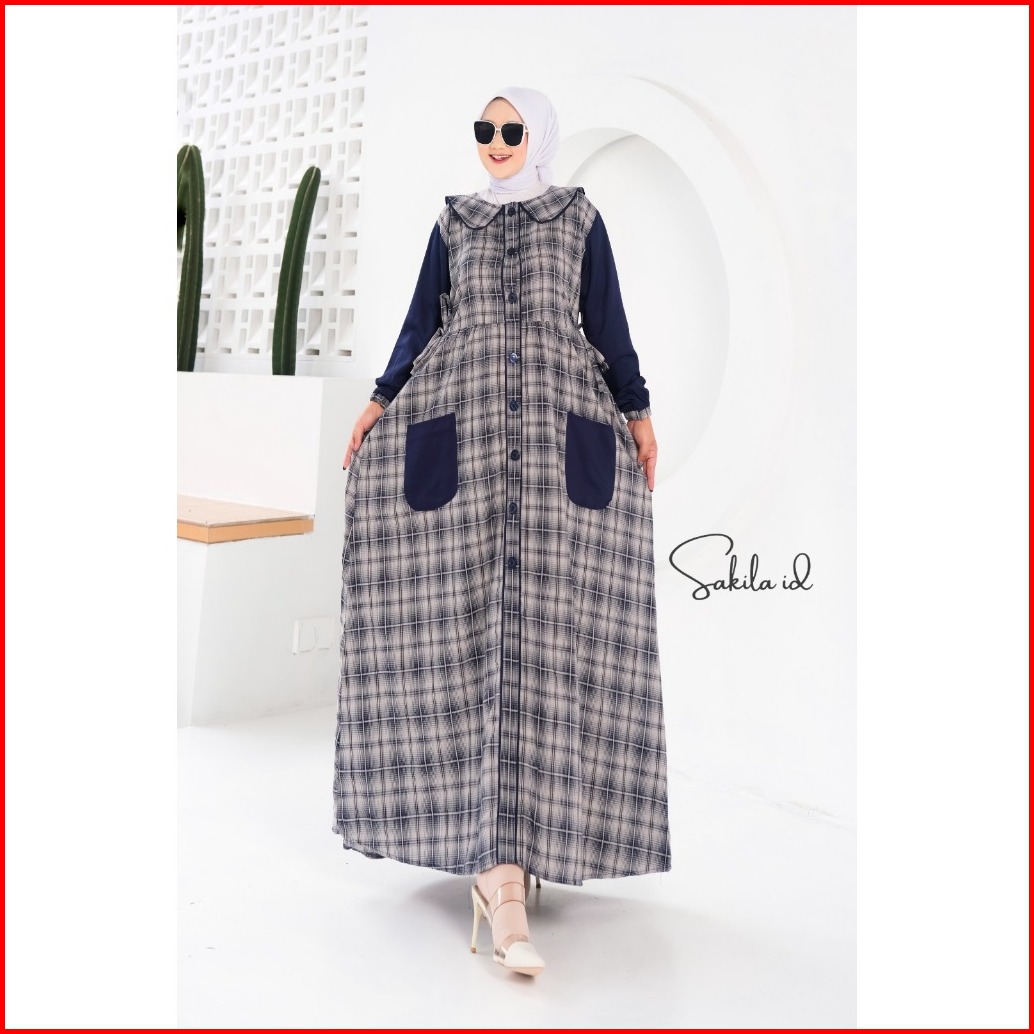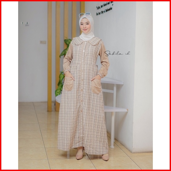 Maxi Dress Haruka Motif Kotak Gamis Kekinian Trendy Kotak Kotak