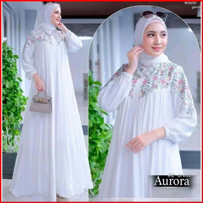 Gamis Bordir Katun Rayon Premium Ld 120cm Warna Hitam Dan Putih Gamis Jumbo Gamis Lebaran 2025 Gamis Aurora Formal Terba