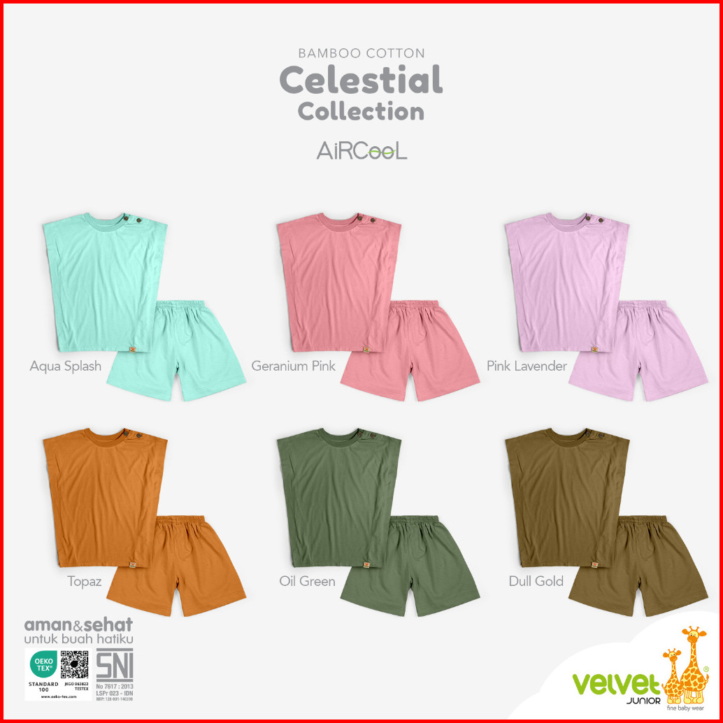 Velvet Junior Piyama Bamboo Cotton Baju Anak Sayap Celana Pendek Girl Celestial 8 Series