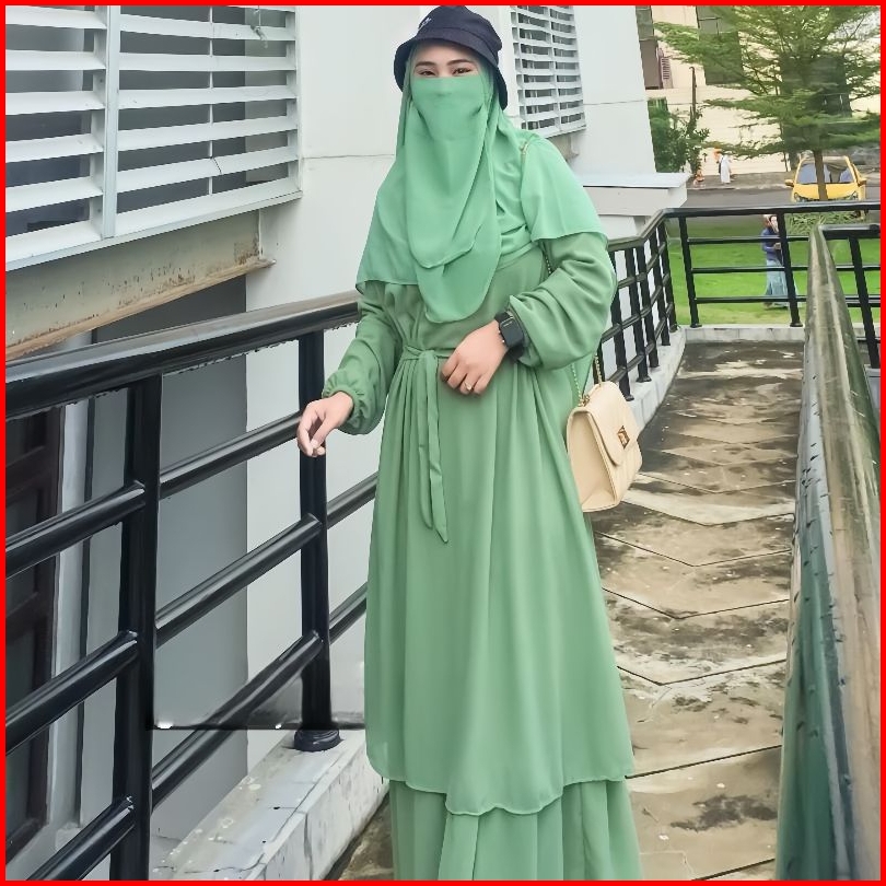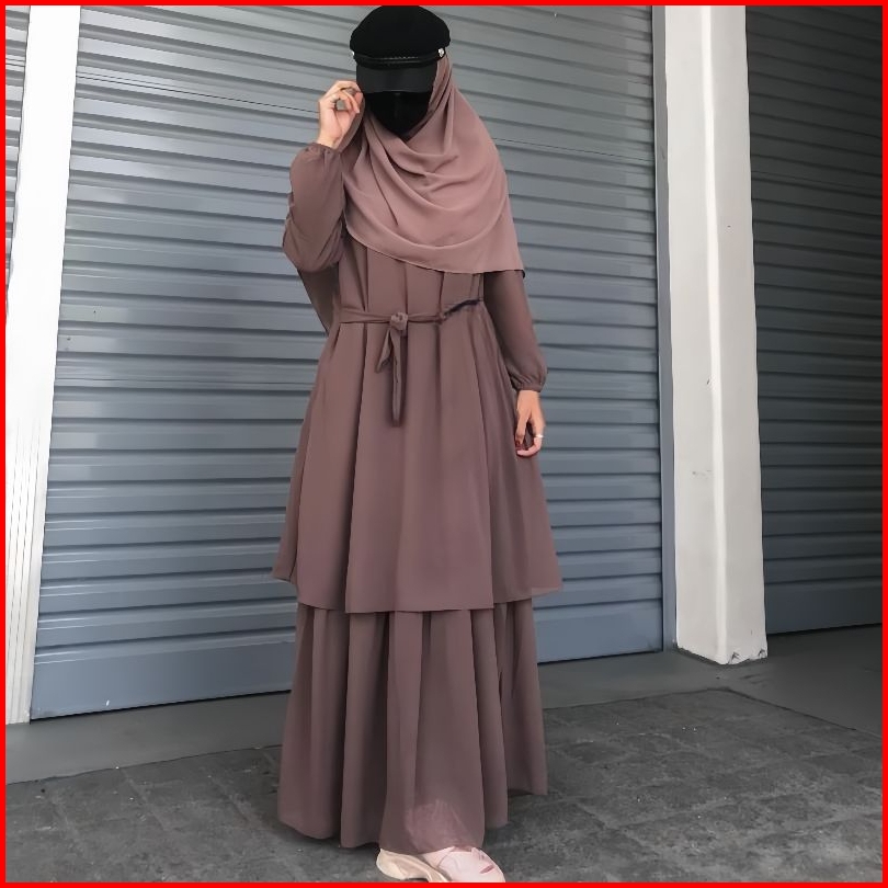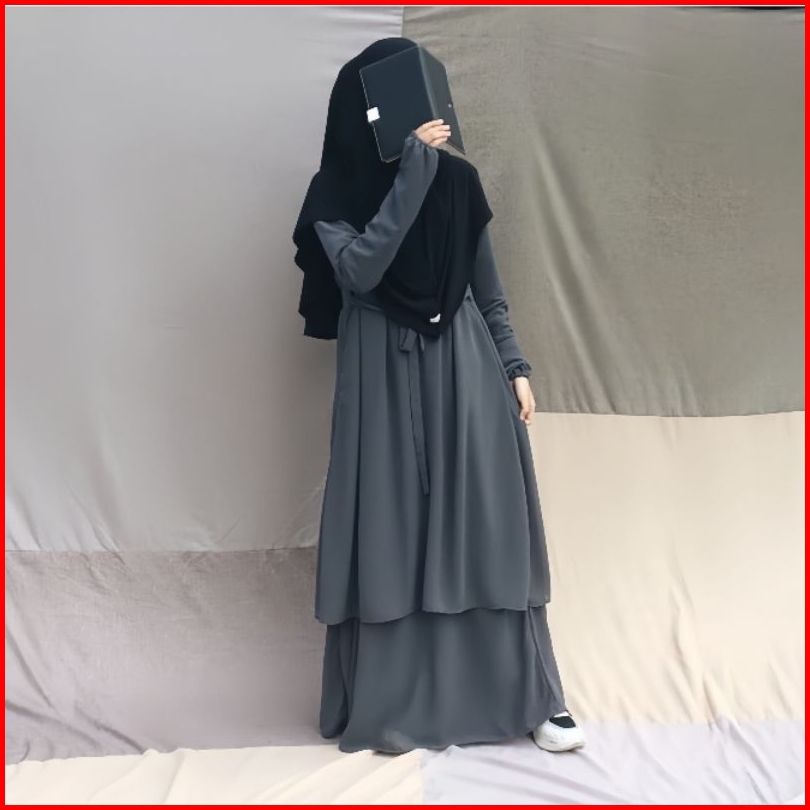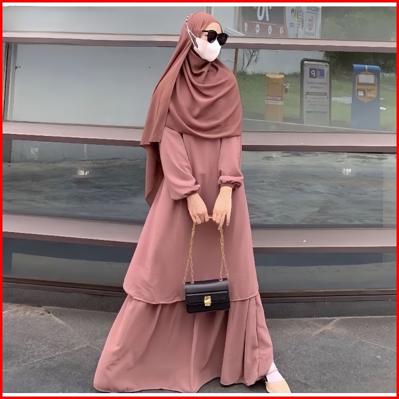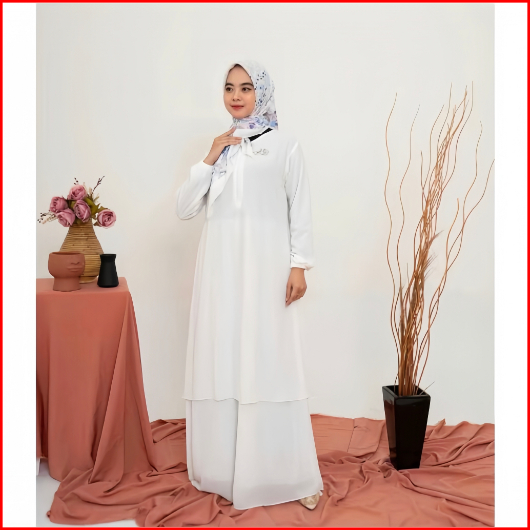 Gamis Malaysia Terbaru Anggun Polos Model Lebaran Wanita Dewasa - Ceruty Babydoll Full Puring