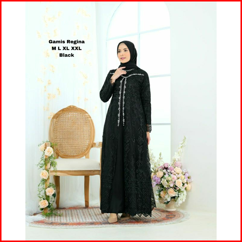 Regina Dress Lebaran Kondangan L Xl Xxl Premium Jumbo Mewah Gamis Muslim Produk Terbaru Milo Taro Rosegold Hitam Sage