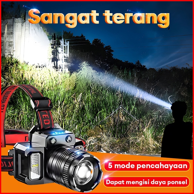 Headlamp Outdoor Senter Kepala Zoom Waterproof Usb Rechargeable F-t51 Multifungsi Untuk Camping Dan Memancing