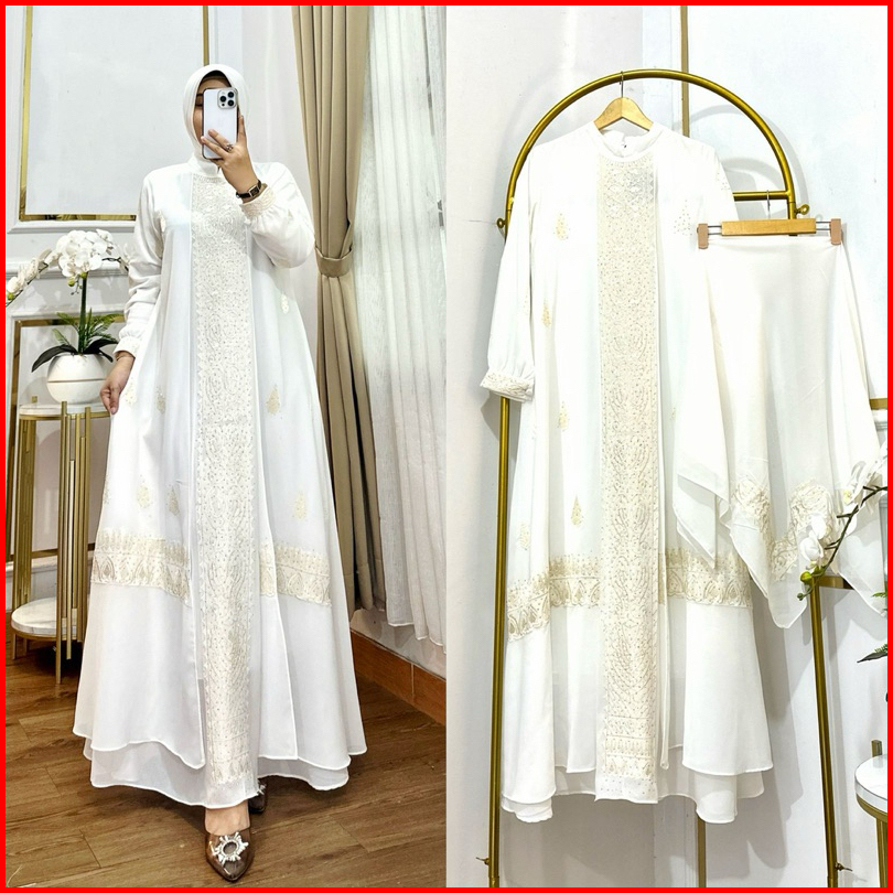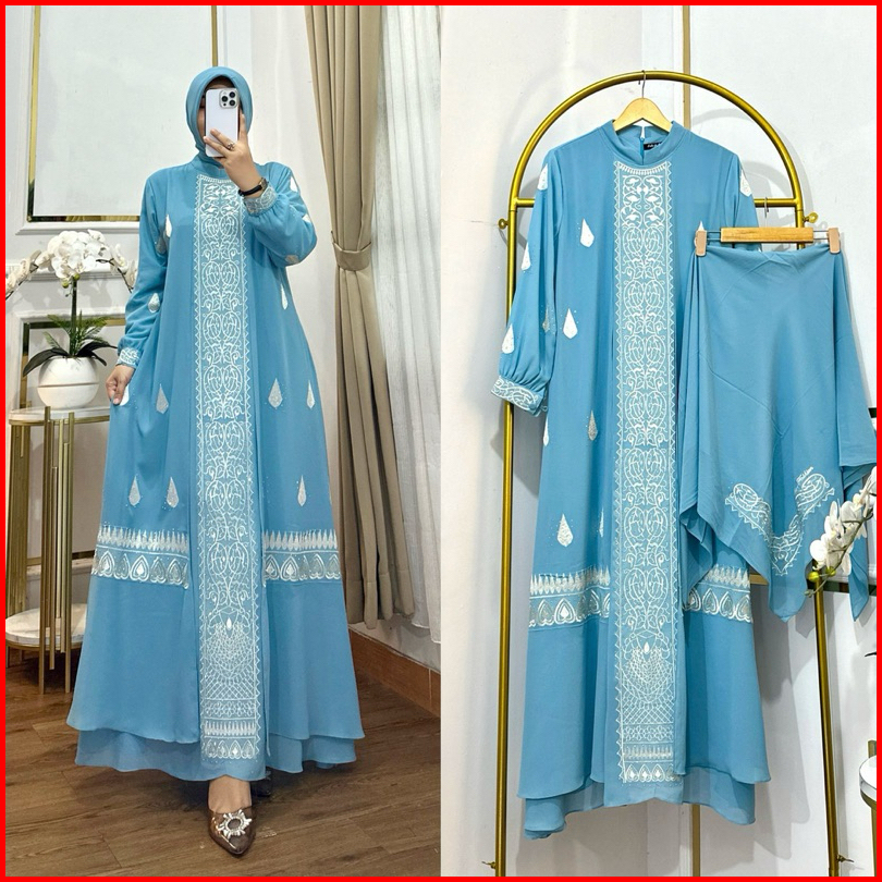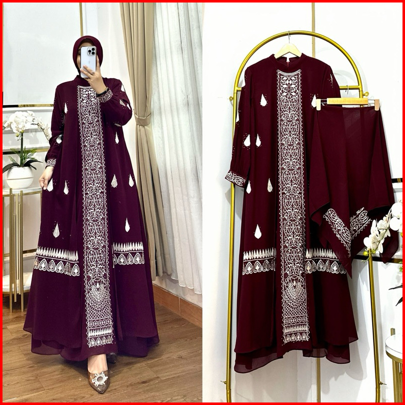 Gamis Bordir Set Hijab Terbaru 2025 Fashion Muslim Kekinian Dress Lebaran Trendy