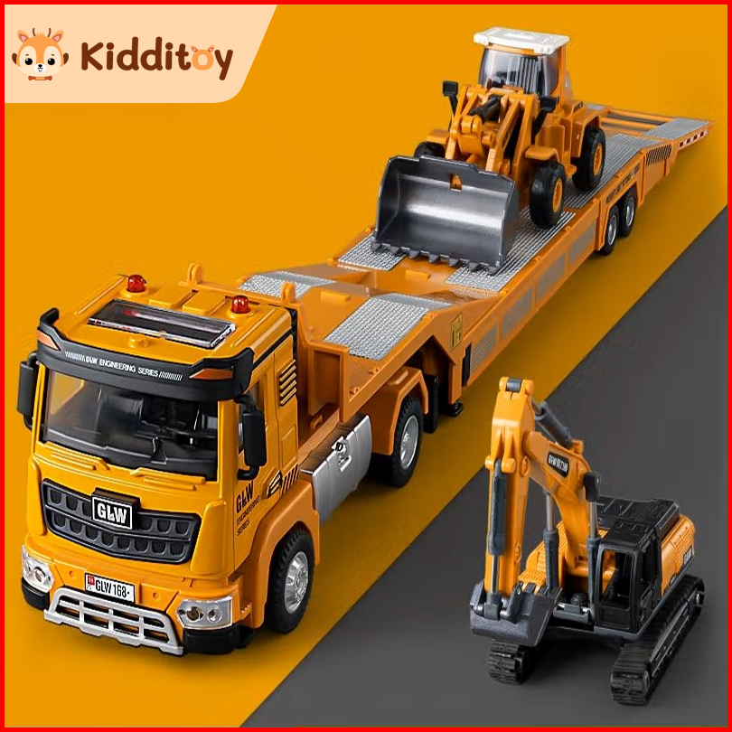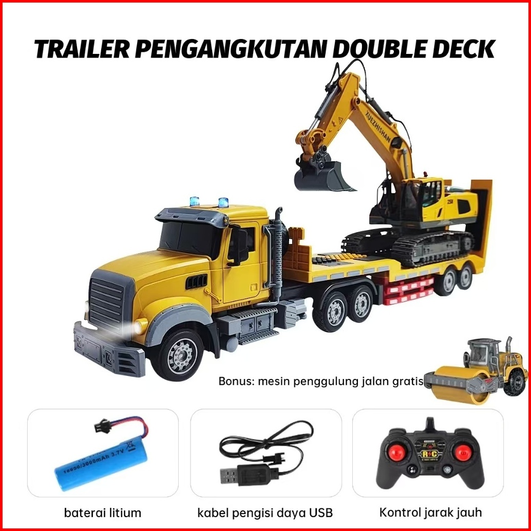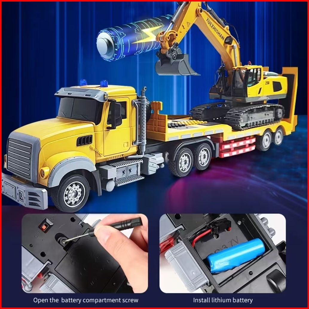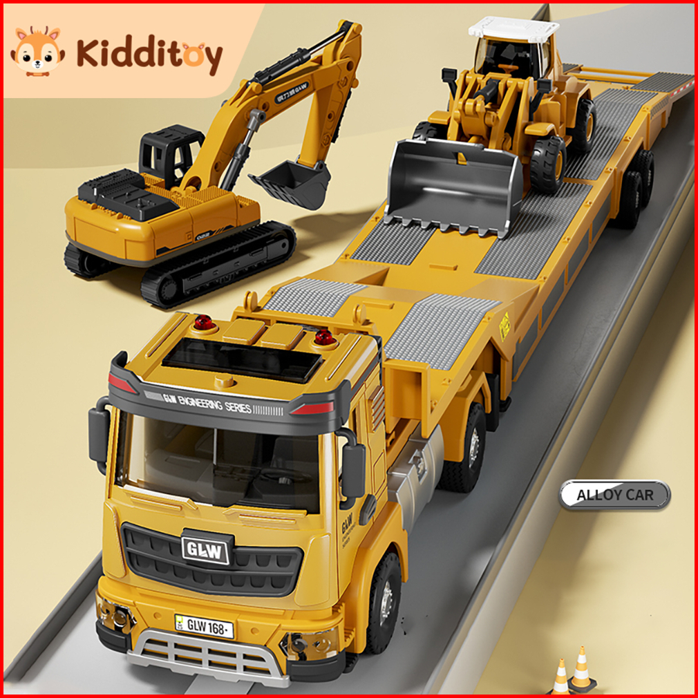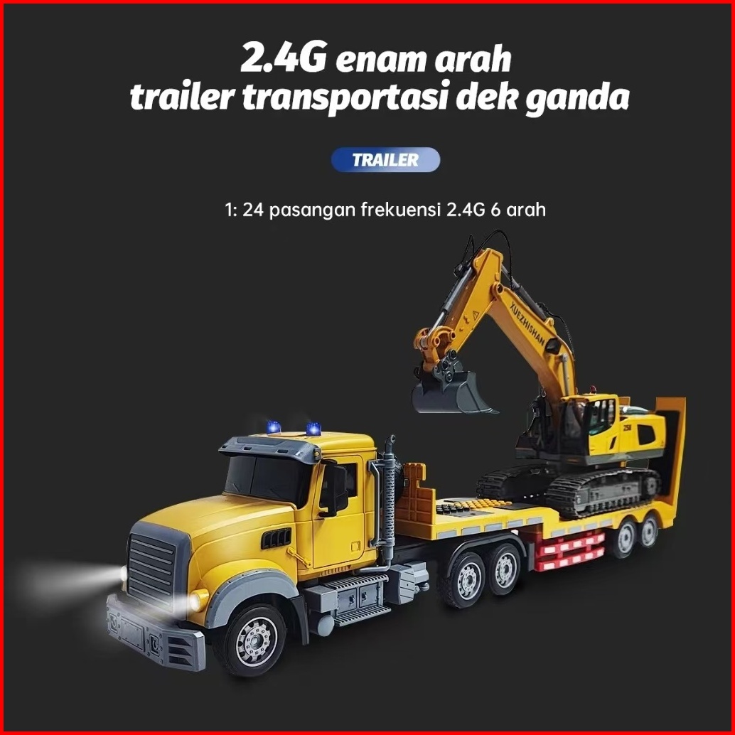 Kidditoy Trailer Kendaraan Rekayasa Remote Control Eskavator Gaya Amerika 1 24 Lampu