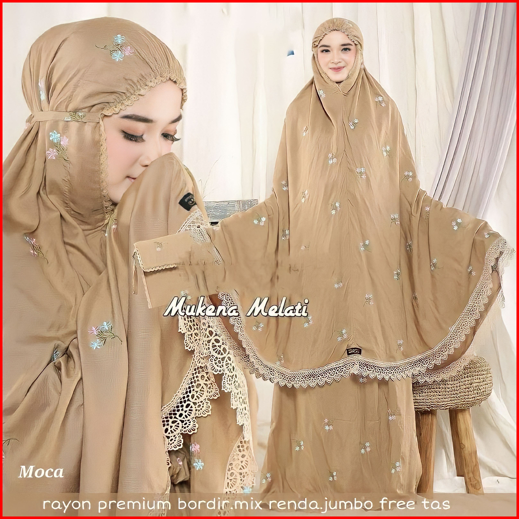 Mukena Dewasa Rayon Vinca Bordir Melati Renda Premium