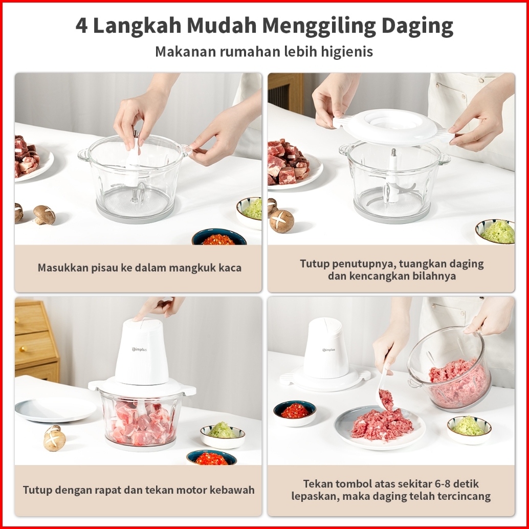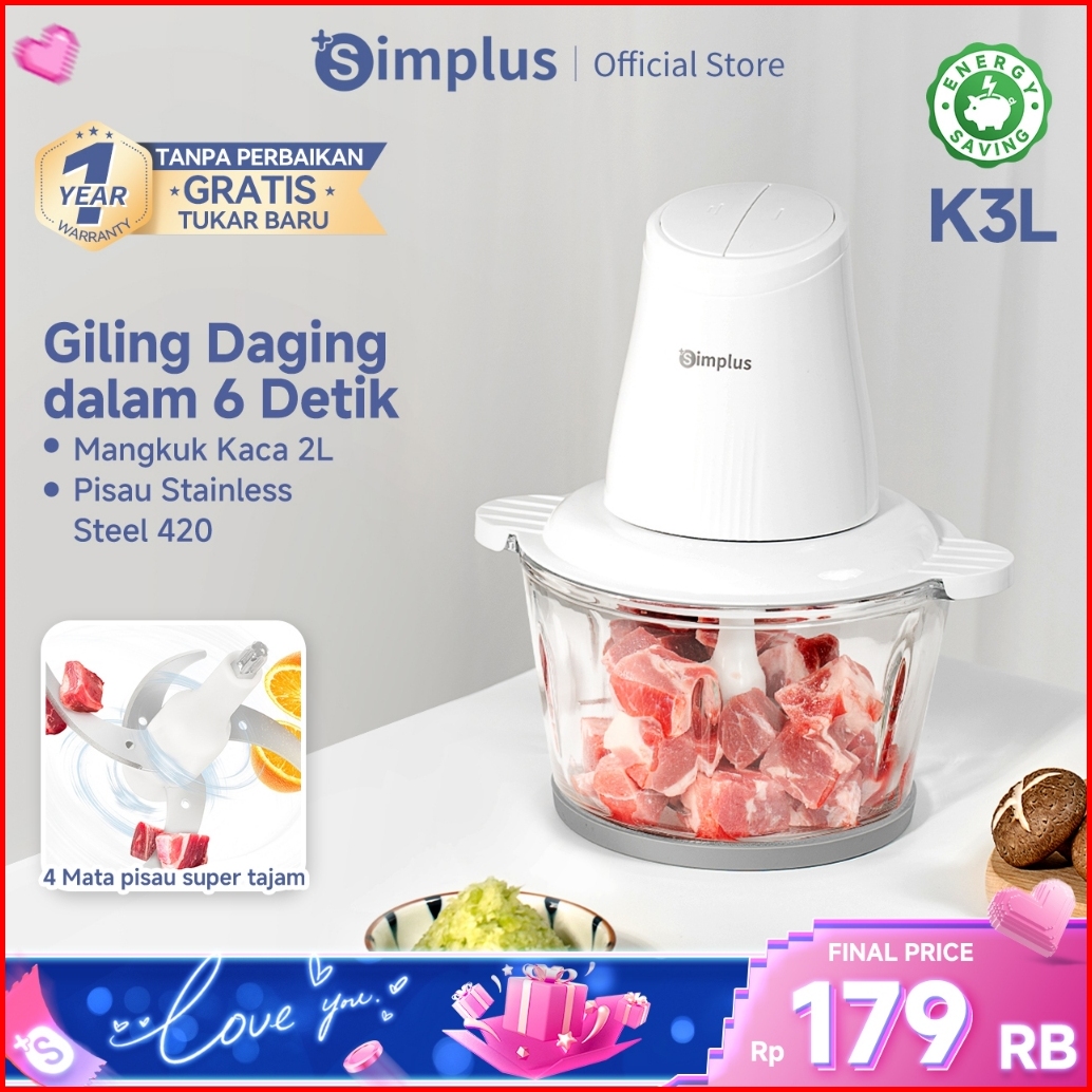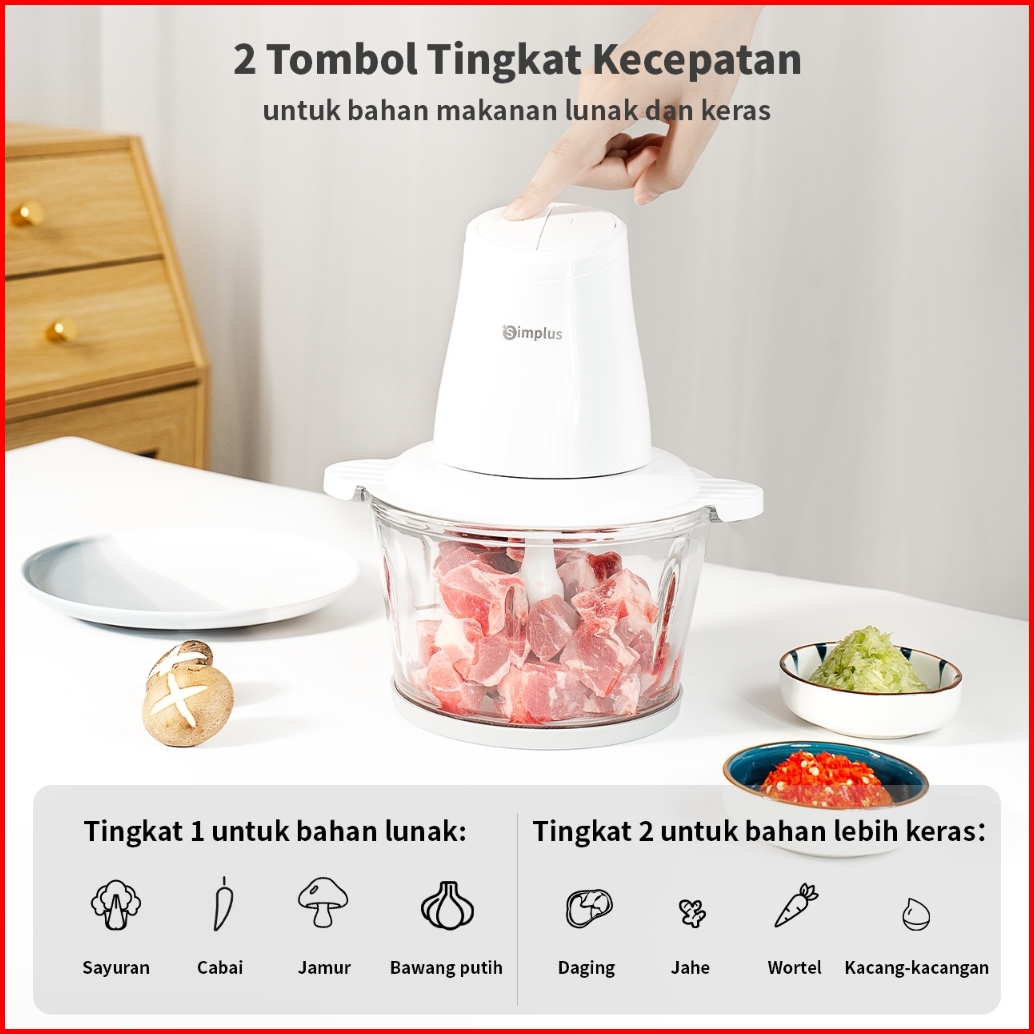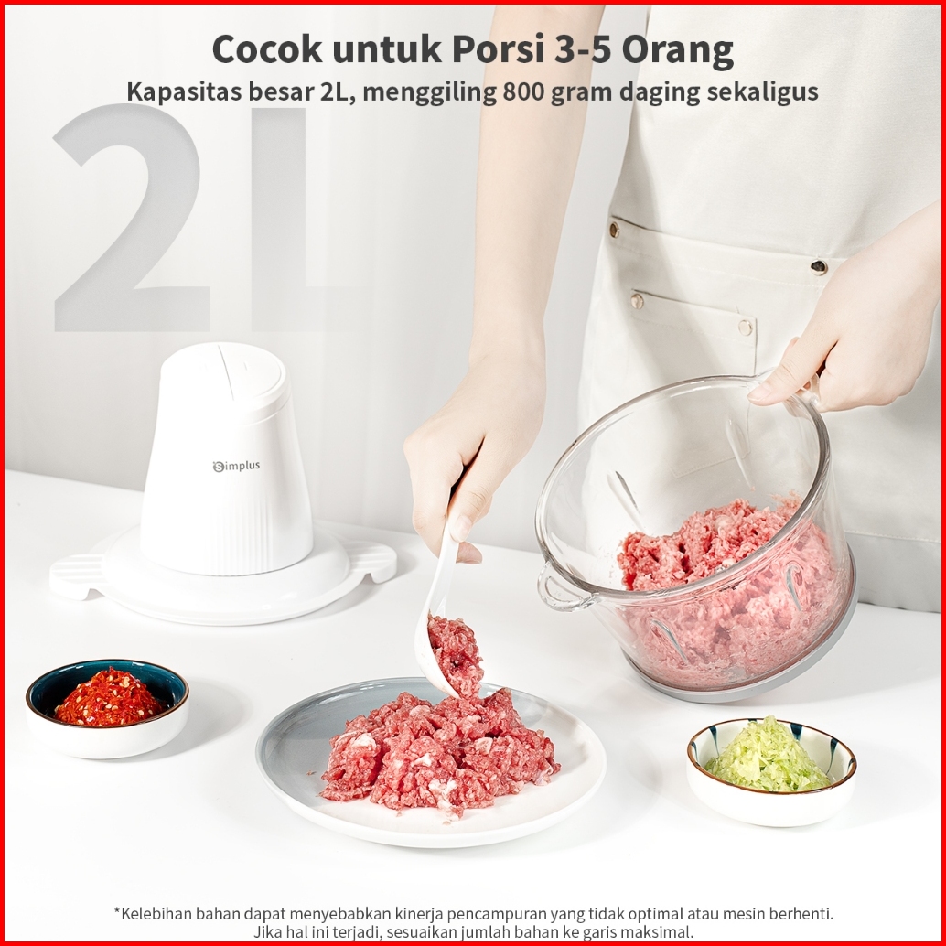 Simplus Chopper Blender 2l Penggiling Daging Penggiling Elektronik Menggiling Daging Cincang Sayuran Bumbu Dapur Mesin O