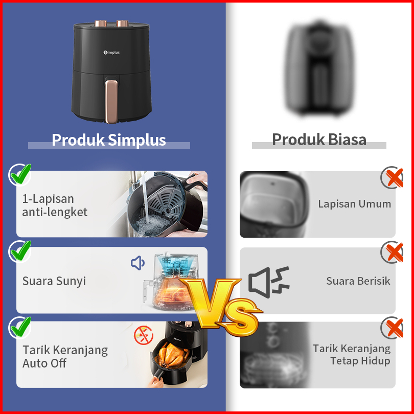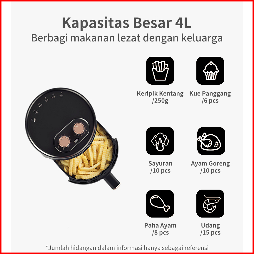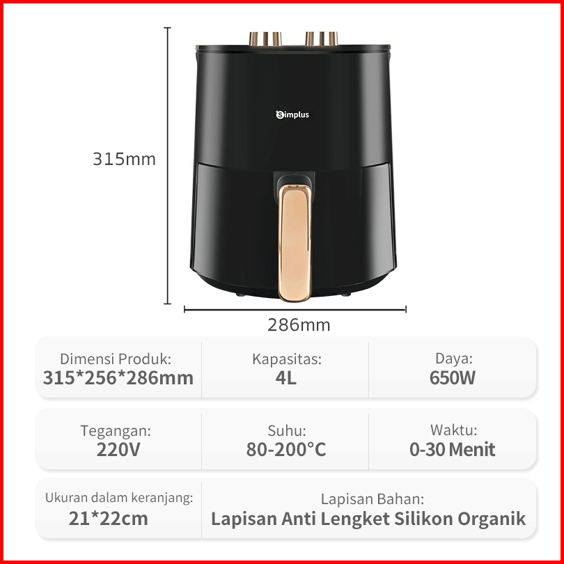 Simplus Air Fryer 4l Low Watt 650w Penggorengan Sehat Tanpa Minyak Anti Lengket Bergaransi 1 Tahun