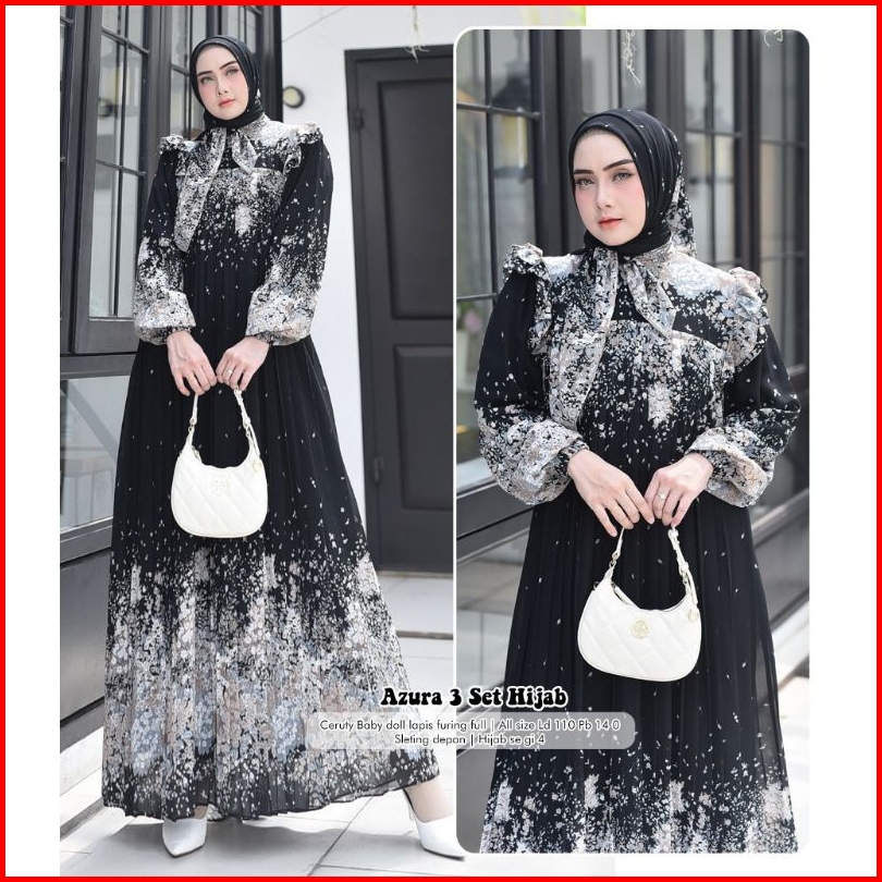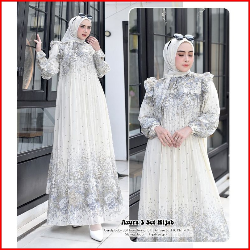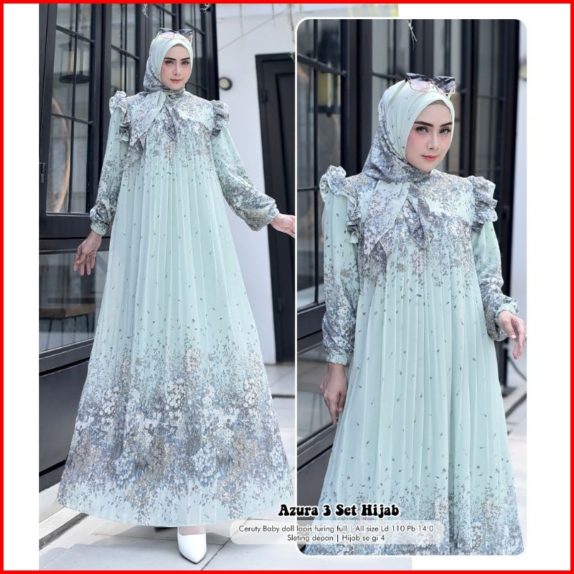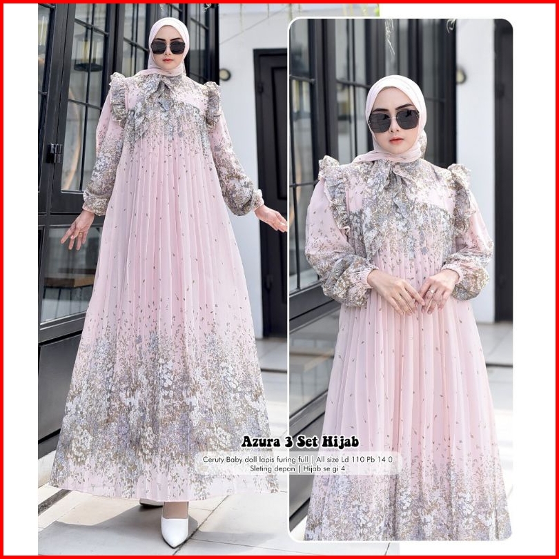 Ready Azura Set Hijab Gamis Wanita Gamis Lebaran 2025 Model Terbaru Gamis Pesta Mewah