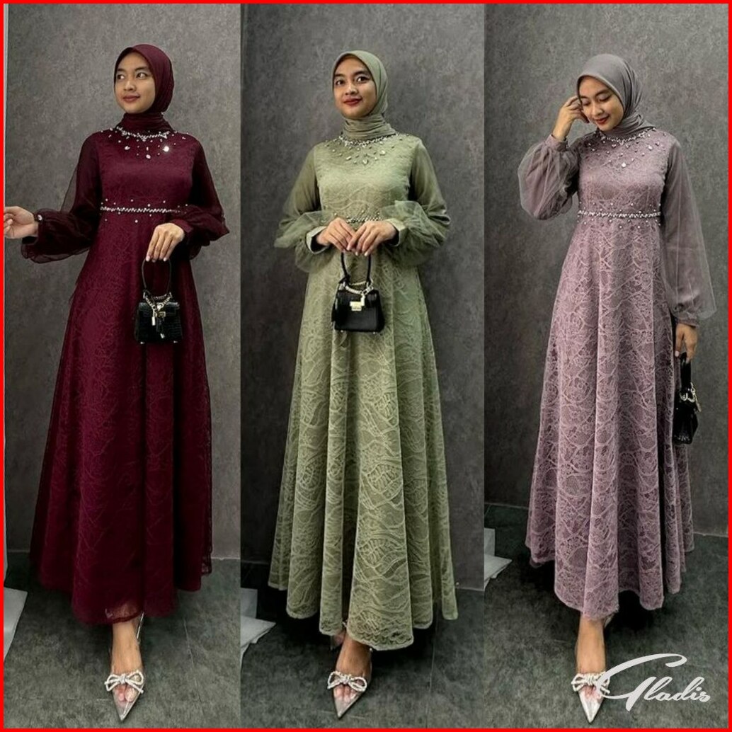 Gamis Nadine Dress Exclusive Gamis Brukat Pesta Mewah Elegan Kondangan Lebaran Wanita Muslim Terbaru