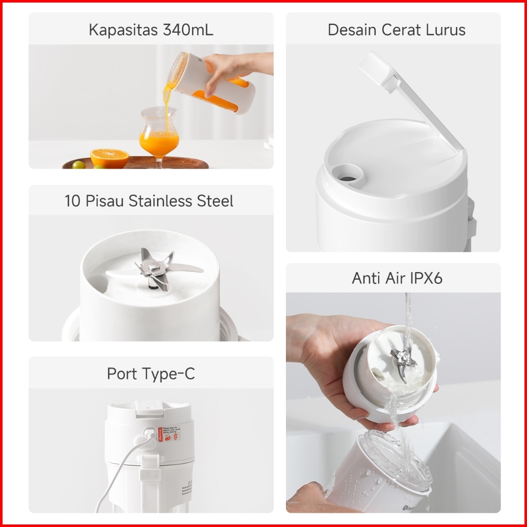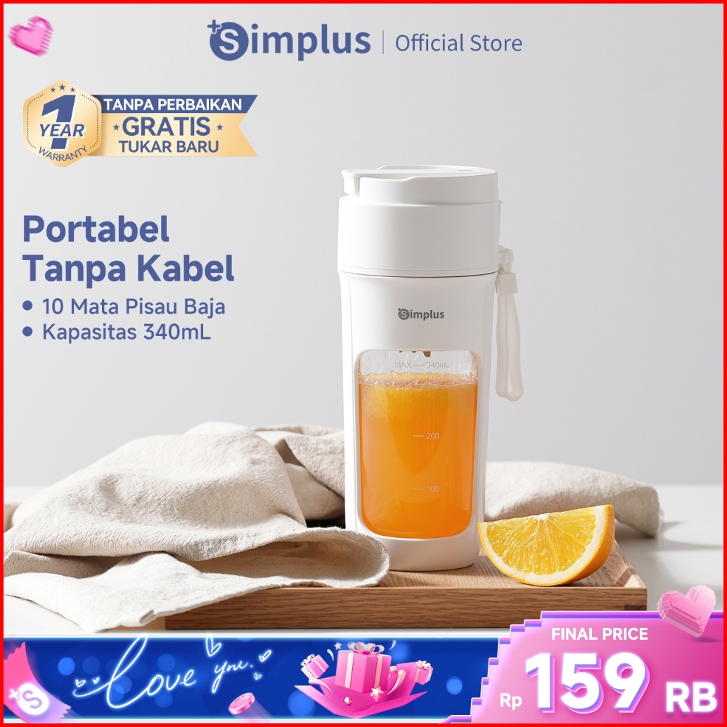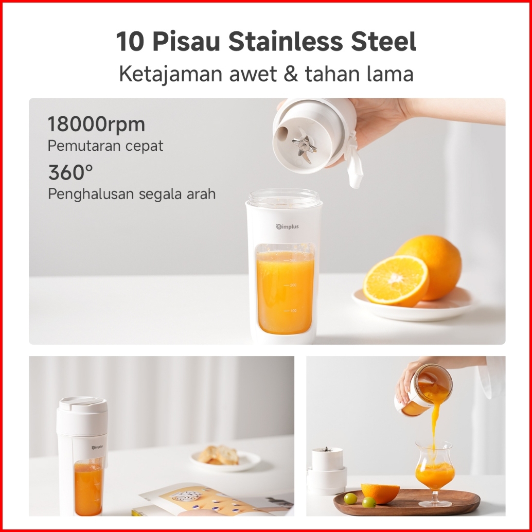 Simplus Blender Portabel 340ml Juicer Multifungsi Gelas Siap Minum 10 Set Pisau Jus Buah Dan Sayur