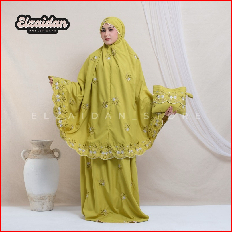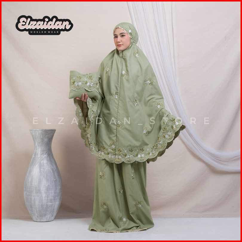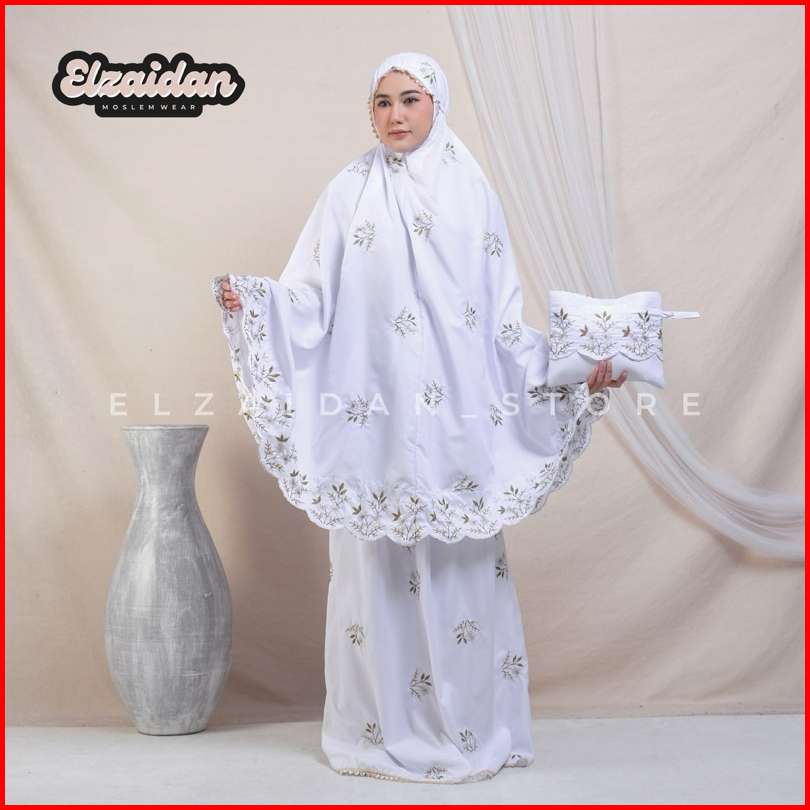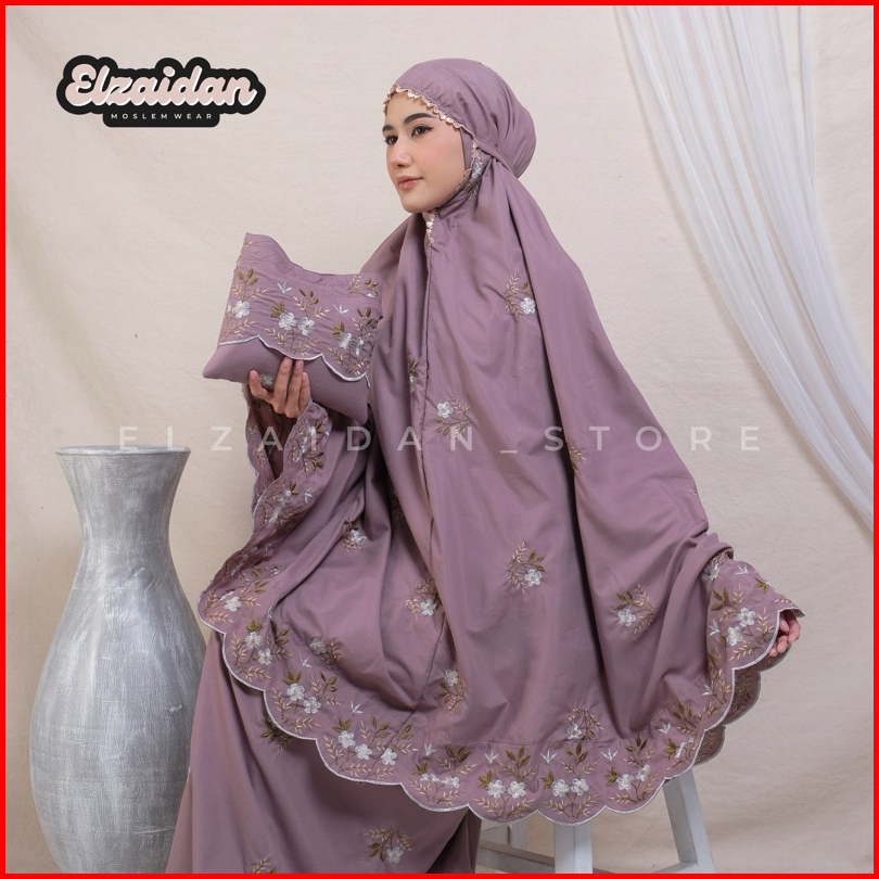Elzaidan-mukena Dewasa Bordir Abila Katun Premium Mewah Cantik