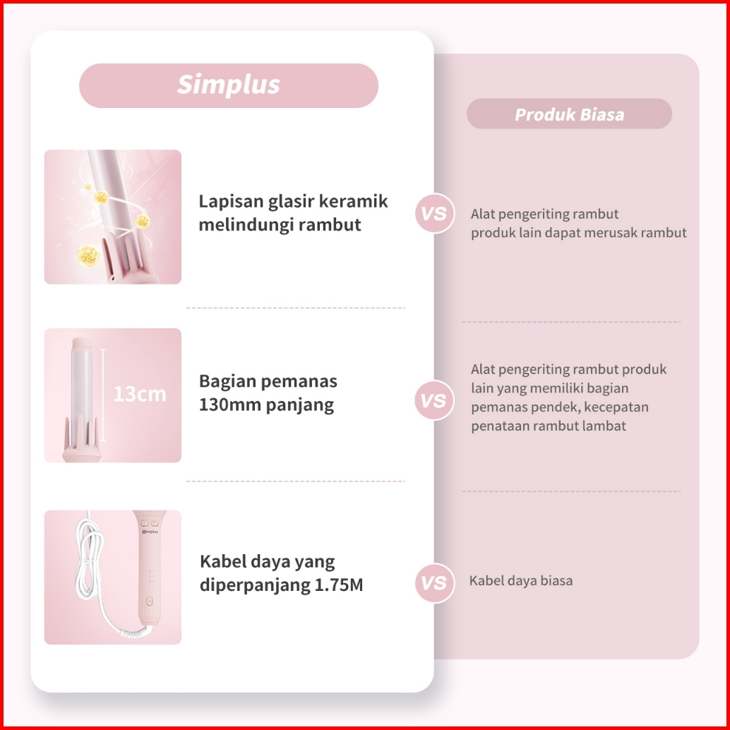 Simplus 32mm Pengeriting Rambut Otomatis Gelombang Besar Tahan Lama Tanpa Merusak
