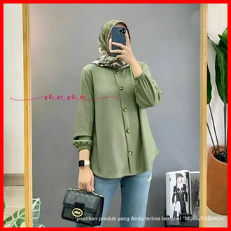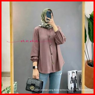 Mumu - Arumi Devanca Blouse S M L Xl Xxl 3xl Atasan Kemeja Crinkle Sutra Wanita Muslimah