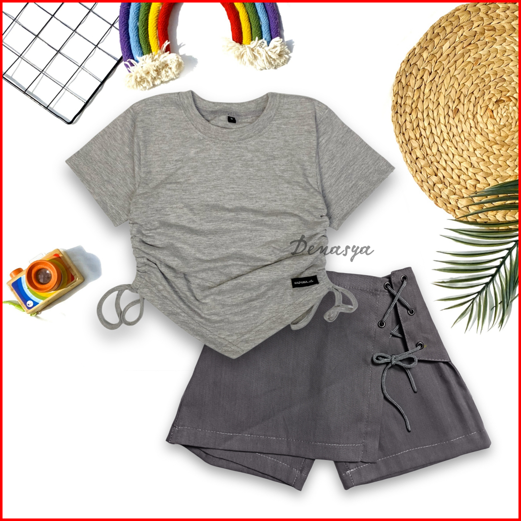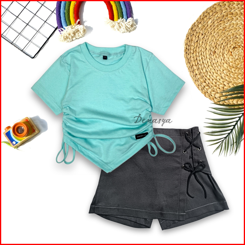Setelan Pendek Anak Perempuan Rok Celana Katun Pendek Best Seller Kaos Atasan Serut Croptop Usia 6 Bulan - 6 Tahun