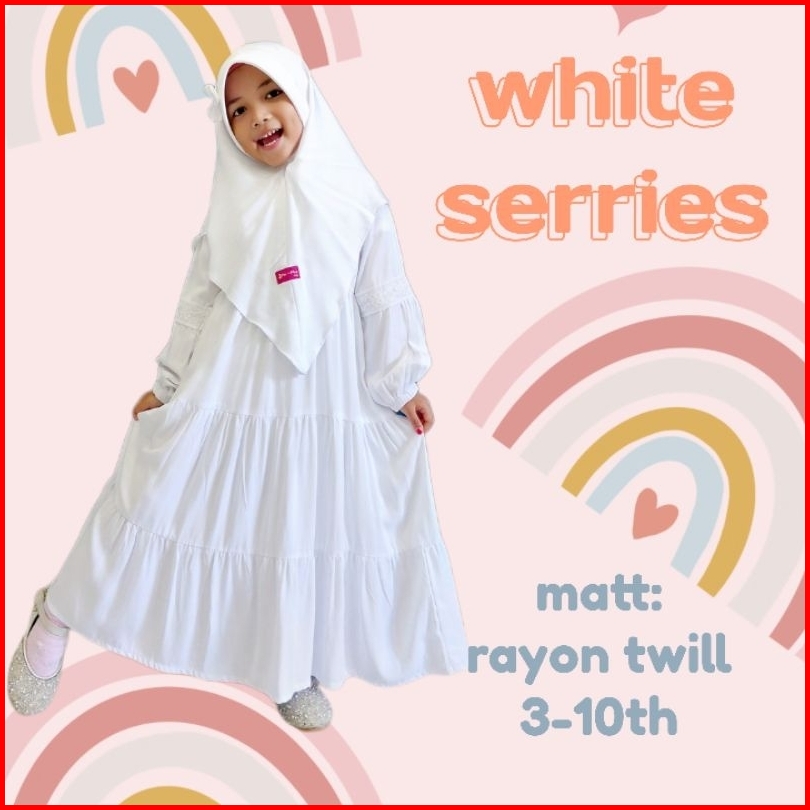 Baju Muslim Anak Gamis Anak Perempuan Putih Polos White Series Gamis Manasik Anak Free Jilbab