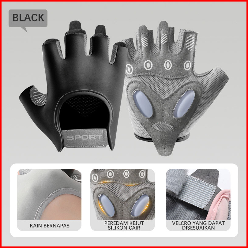 Timetosport Sarung Tangan Olahraga Gym Sepeda Perlindungan Matahari Non-slip Bernapas Half Finger Glove 3012