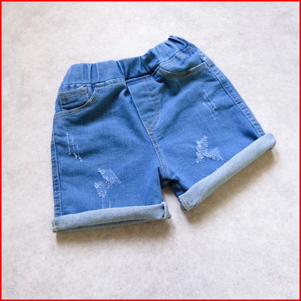Krucilkuu-celana Jeans Pendek Anak Mini Ripped Belel Stretch Melar Unisex Cowok Cewek Umur 1-10 Tahun