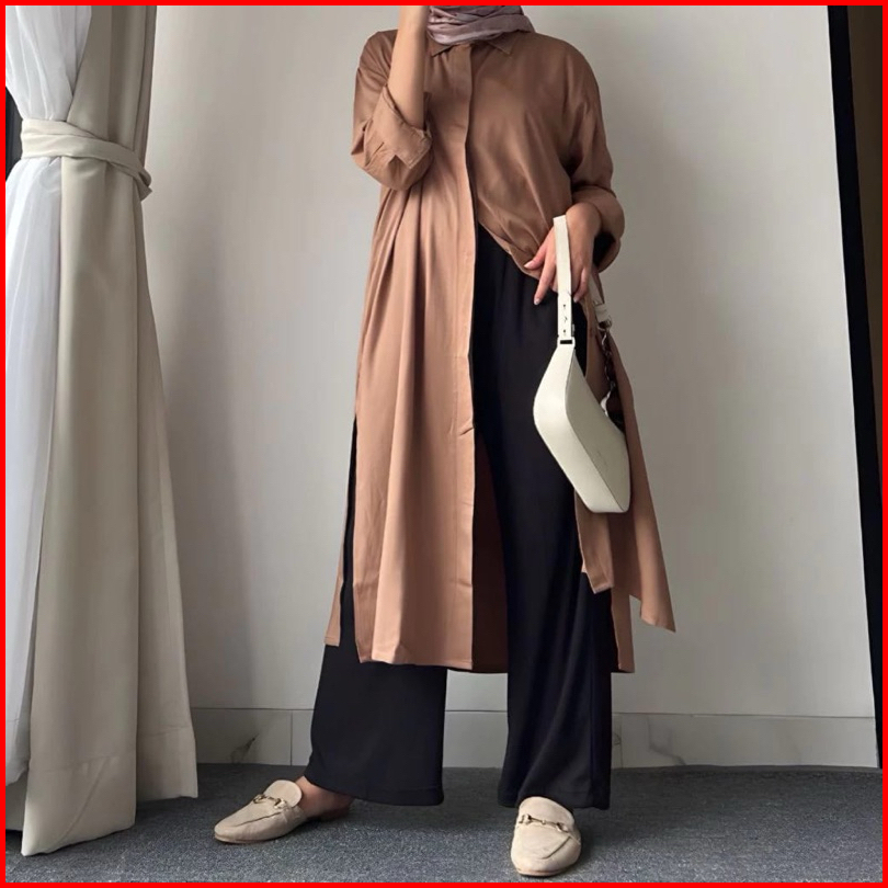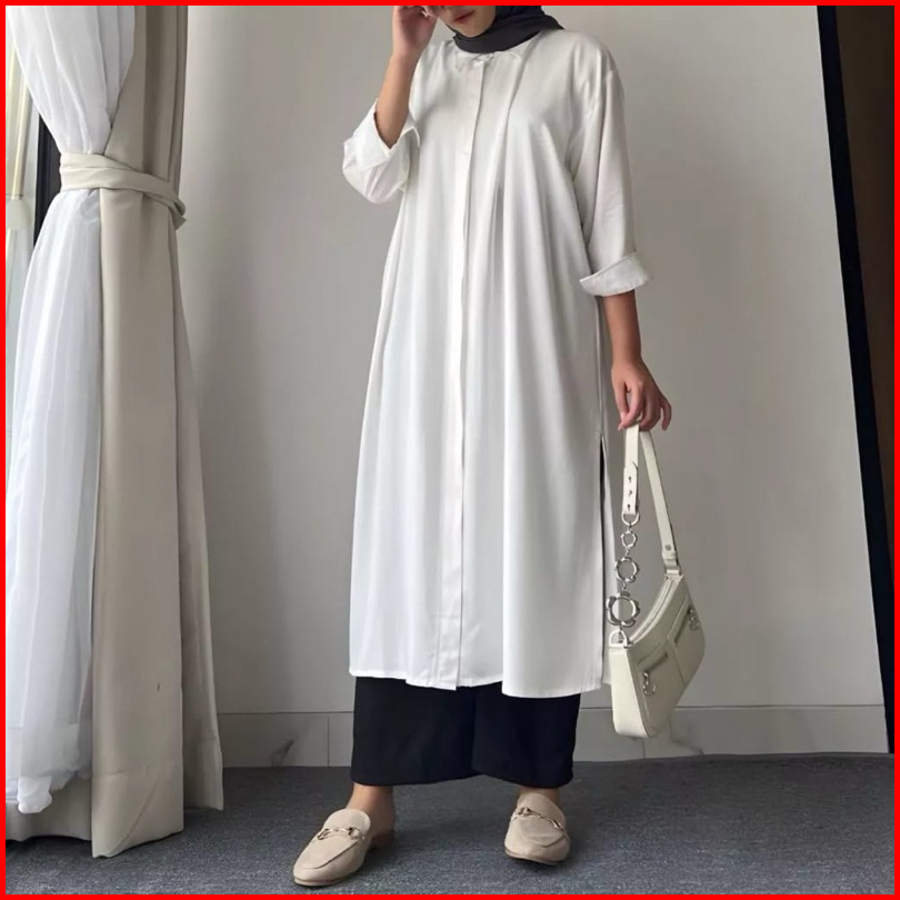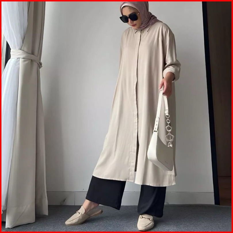 Tunik Jumbo Polos Crinkle Airflow Zeva Kemeja Long Tunik