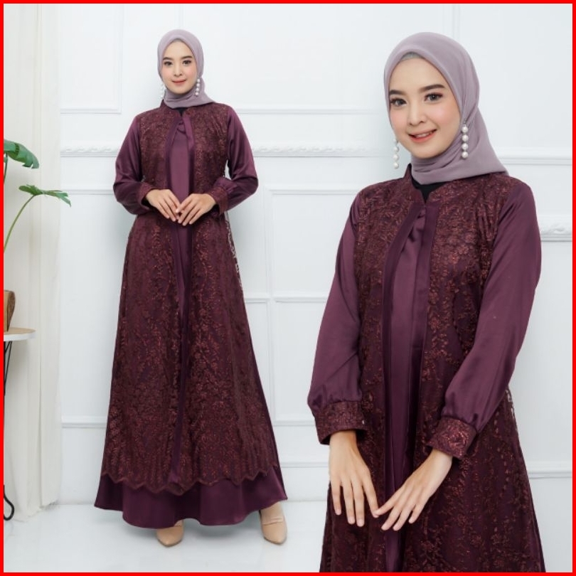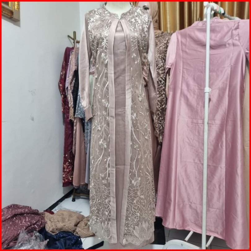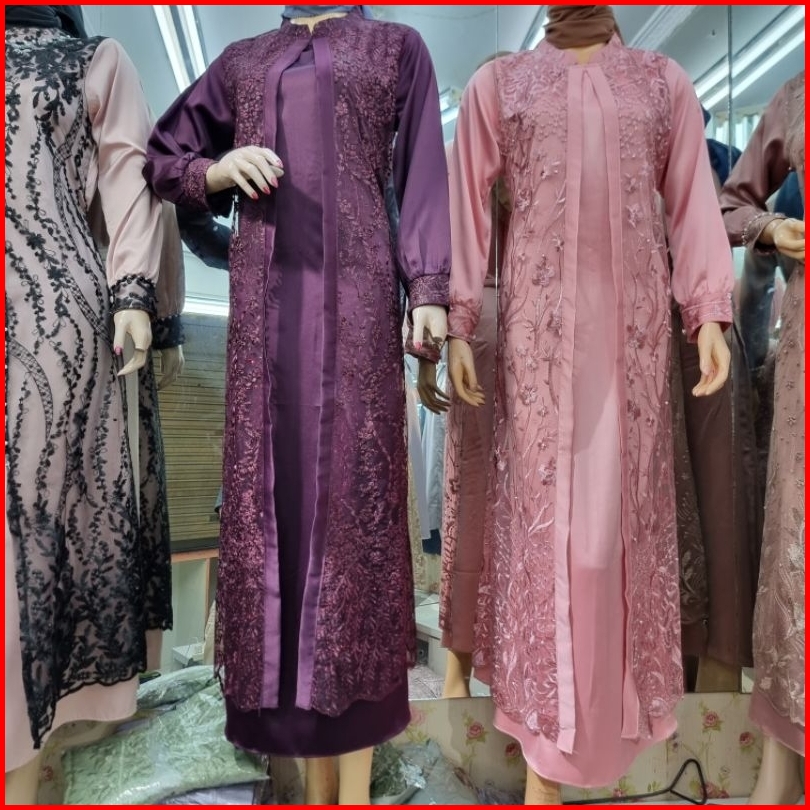 Tr01 Gamis Brukat Tile Rompi Gamis Brukat Muslim Gamis Model Rompi Ukuran M - Xxxl Jumbo