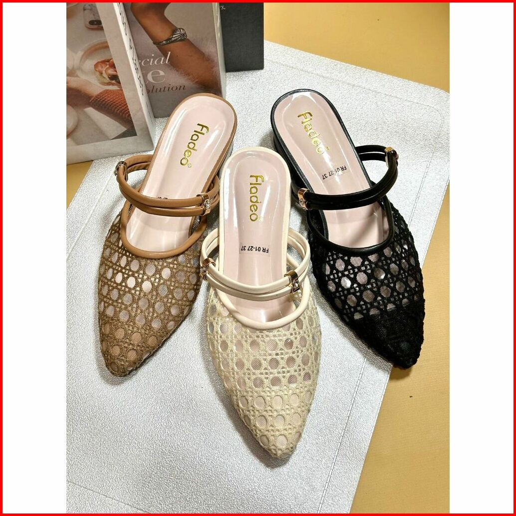 Sandal Wanita Kekinian Mules Heels 3 Cm Termurah Dyo Brukat Tali 2