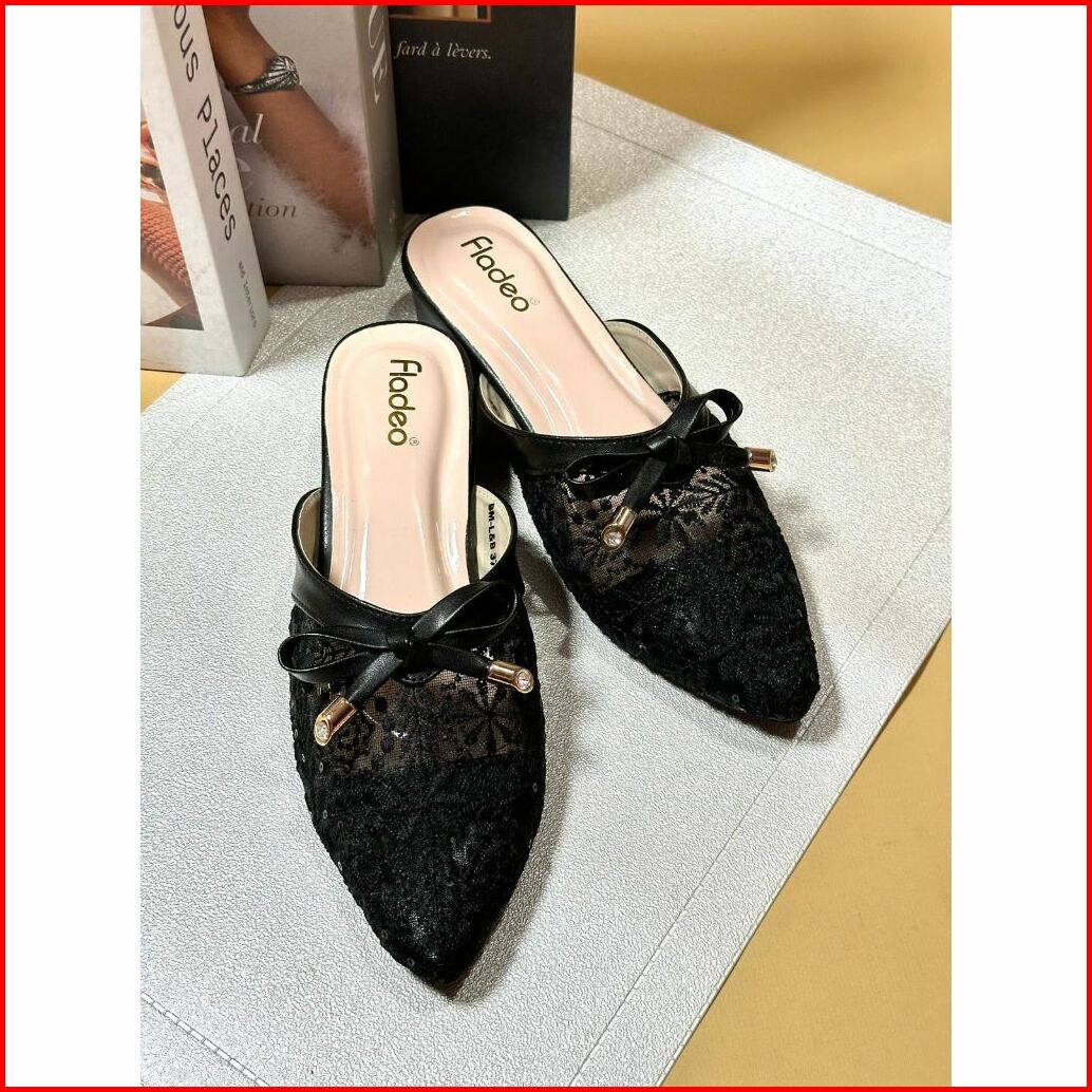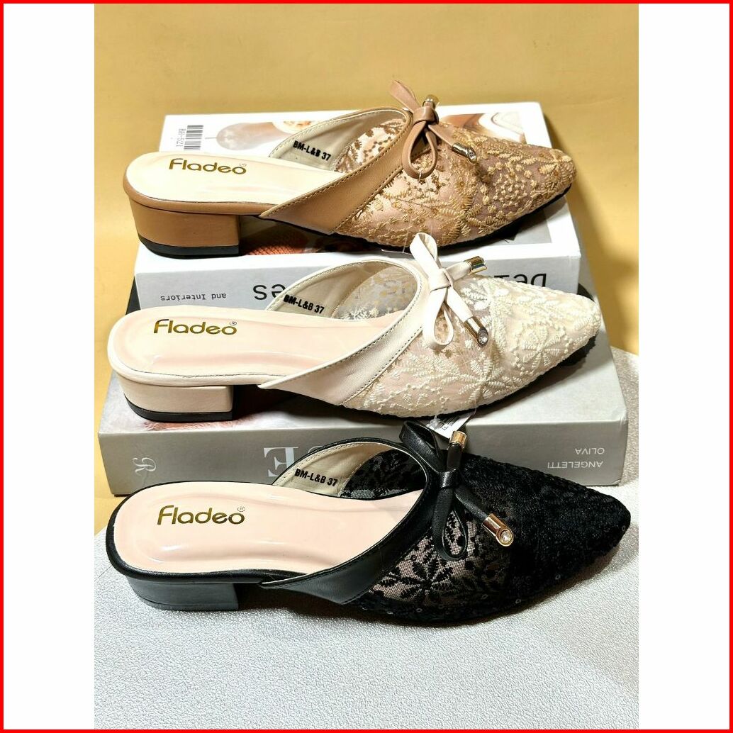 Sandal Wanita Kekinian Mules Hak 3 Cm Termurah Dyo Pita Brukat