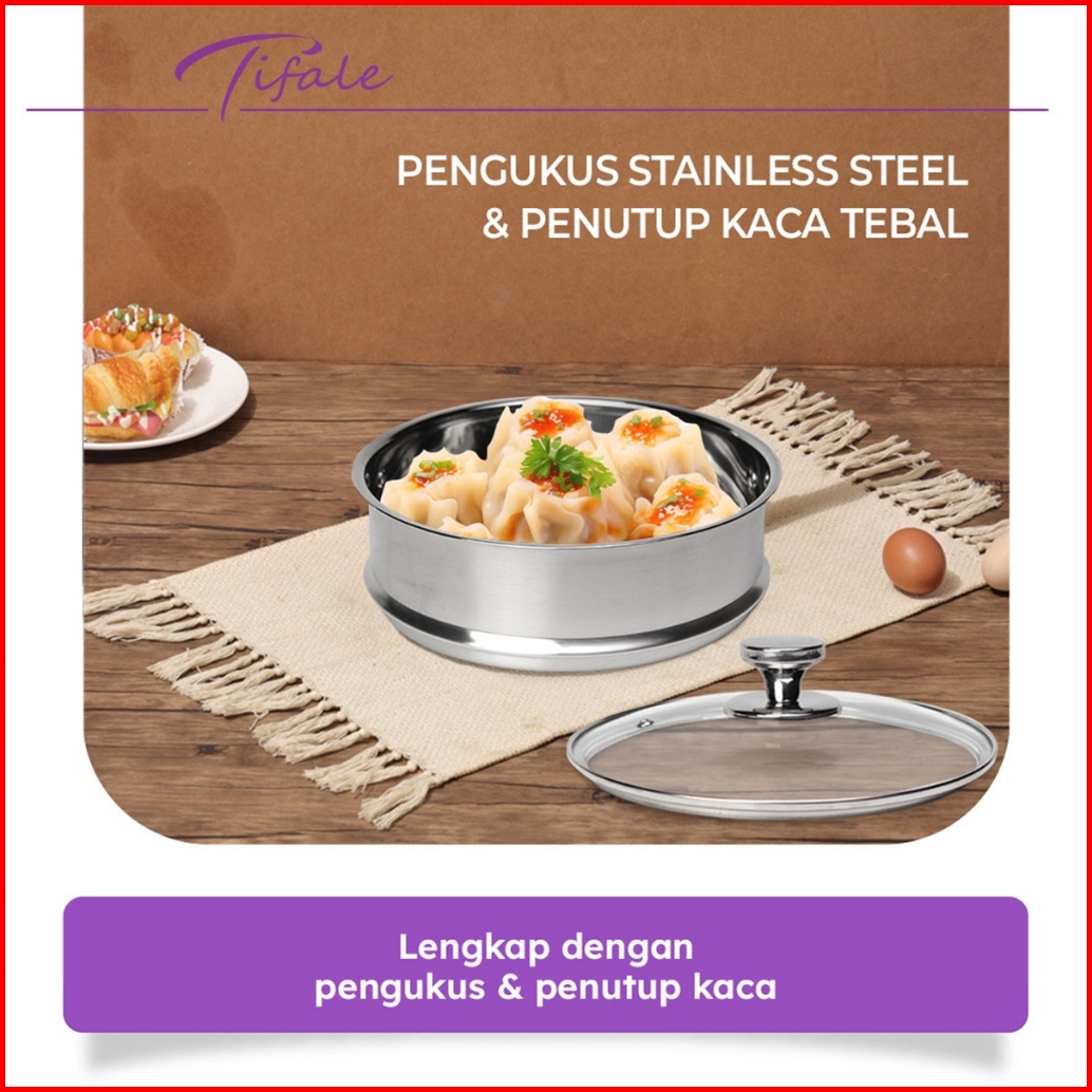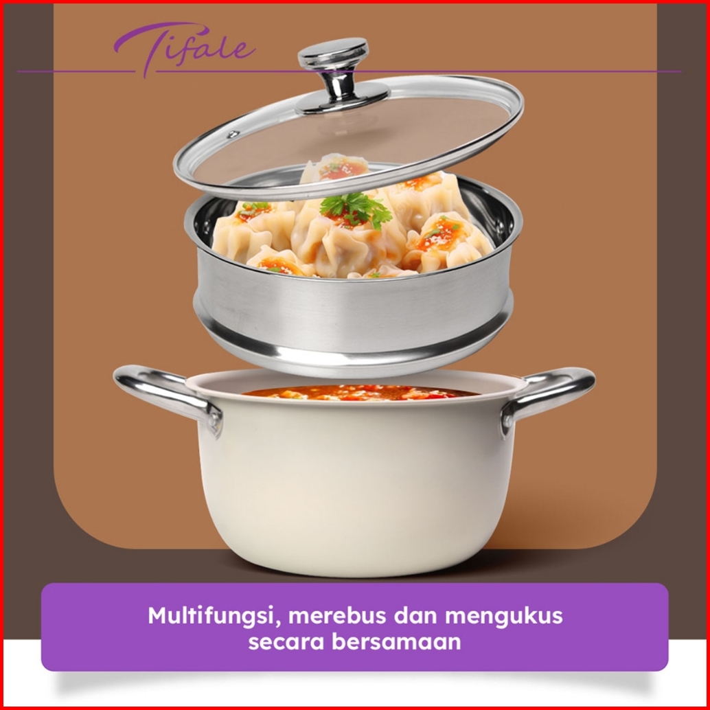 Tifale By Hongzhuo Panci Kukus Sup Steam Pot 2 Tingkat Steamer Stainless Steel Tutup Kaca