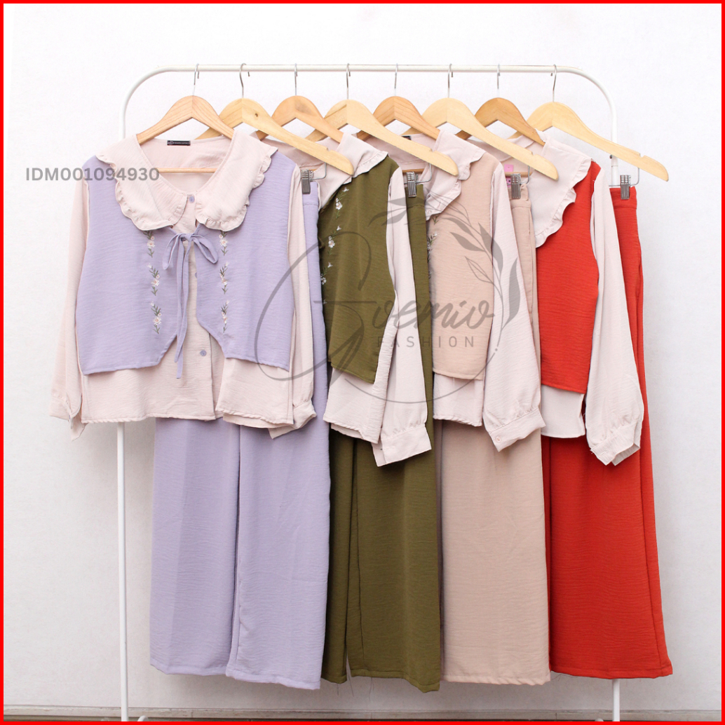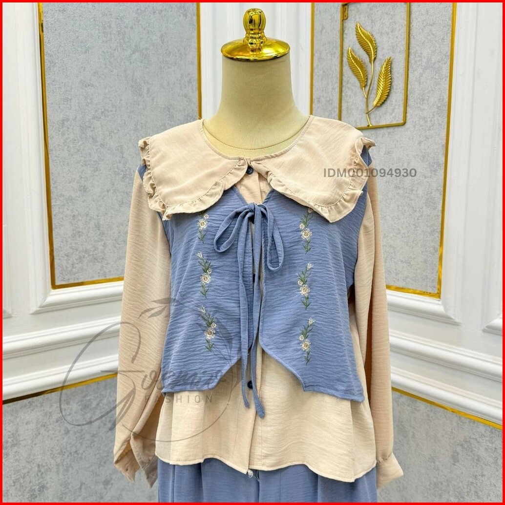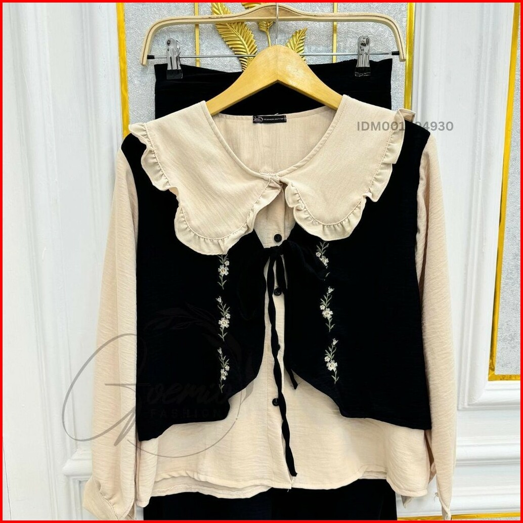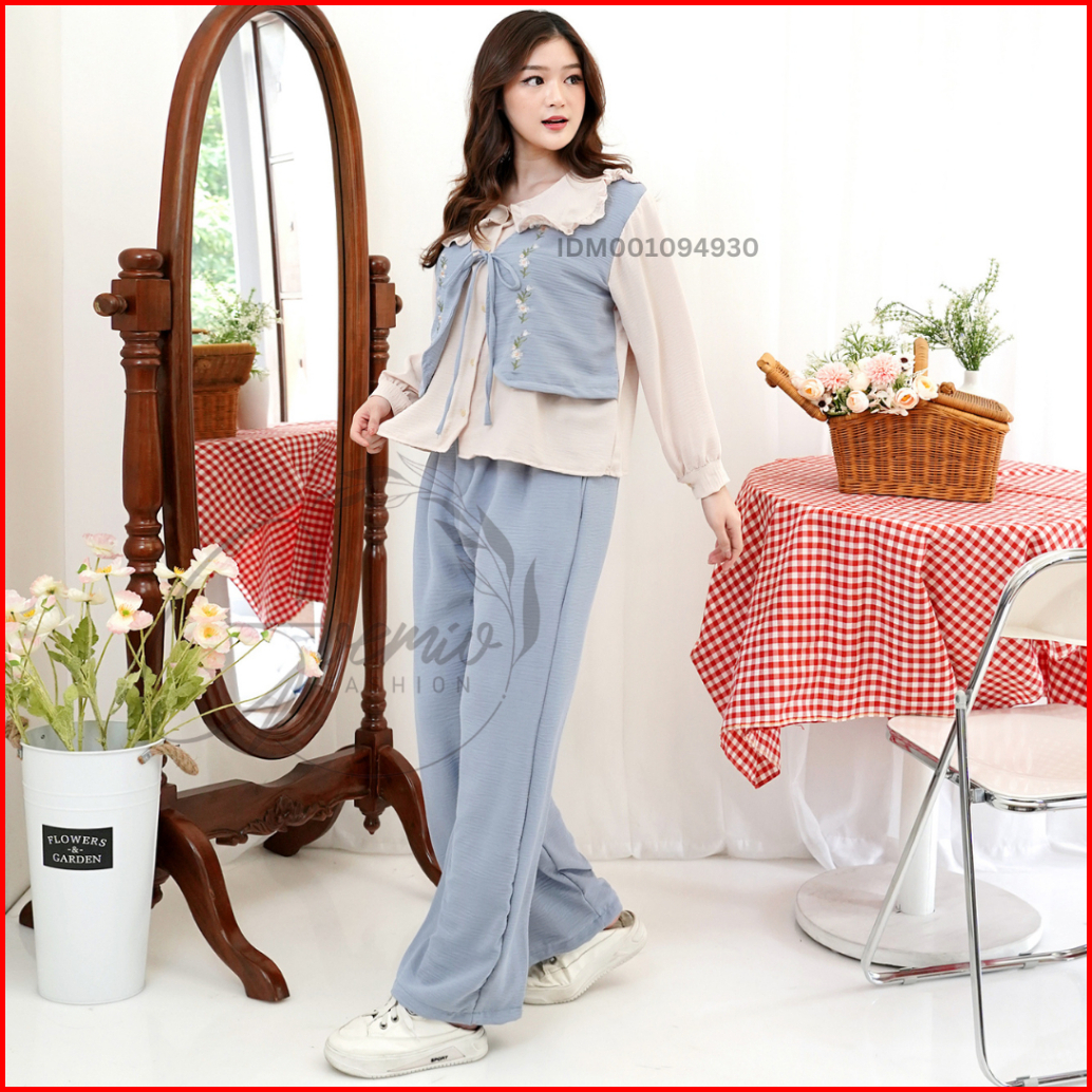 Ilook Ld 110 One Set Boram Airflow Wanita Atasan Motif Lengan Lengan Panjang Celana Highwaist