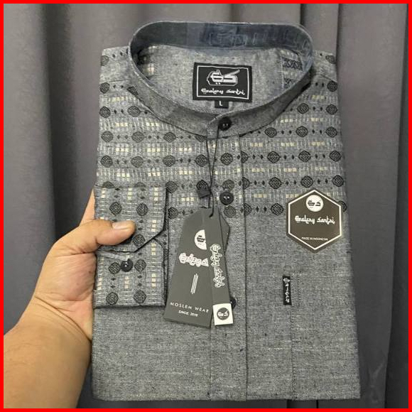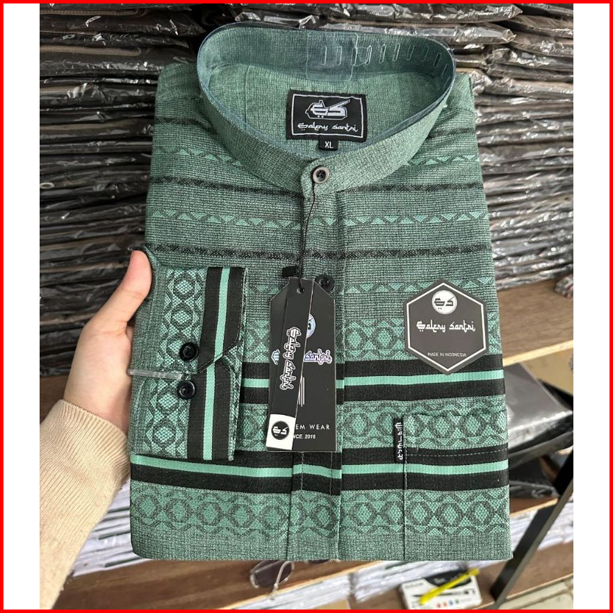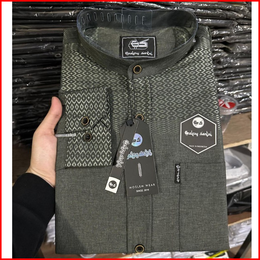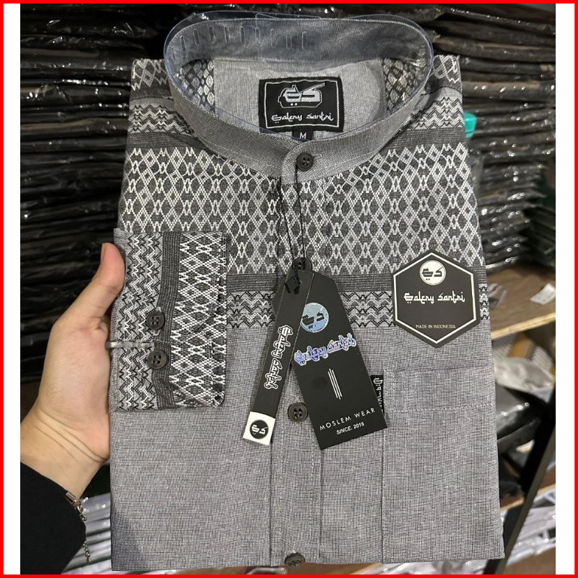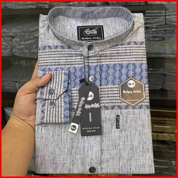 Galery Santri Baju Koko Pria Lengan Panjang Katun Madinah Songket - Kemeja Koko Warna Putih
