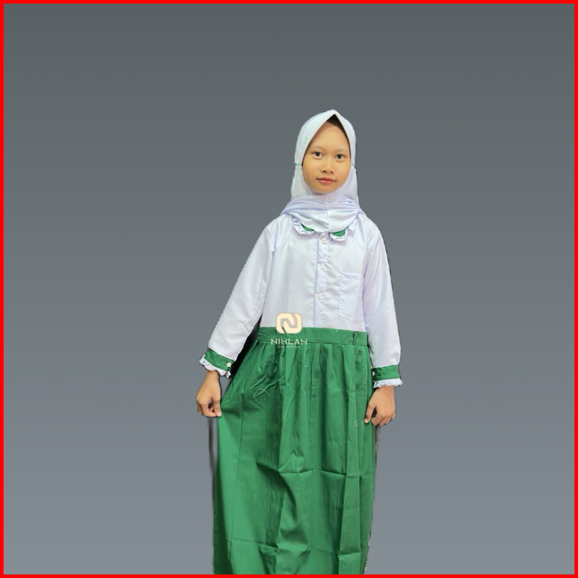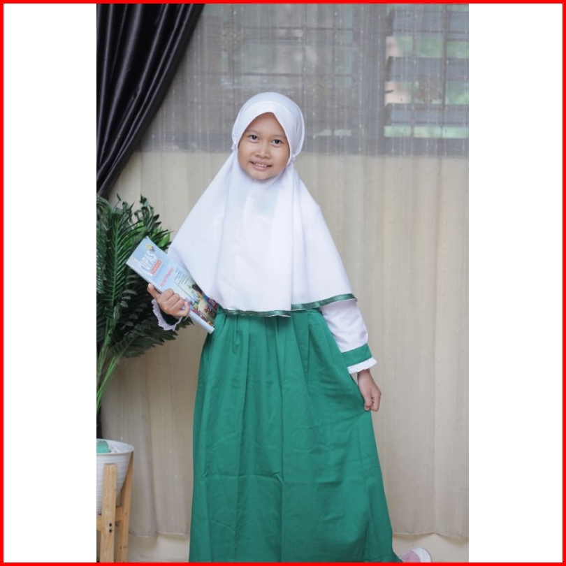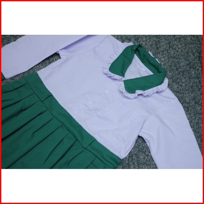 Gamis Seragam Anak Perempuan Putih-hijau Seragam Sekolah Mi Bahan Katun Oxford Grade A Premium Halus