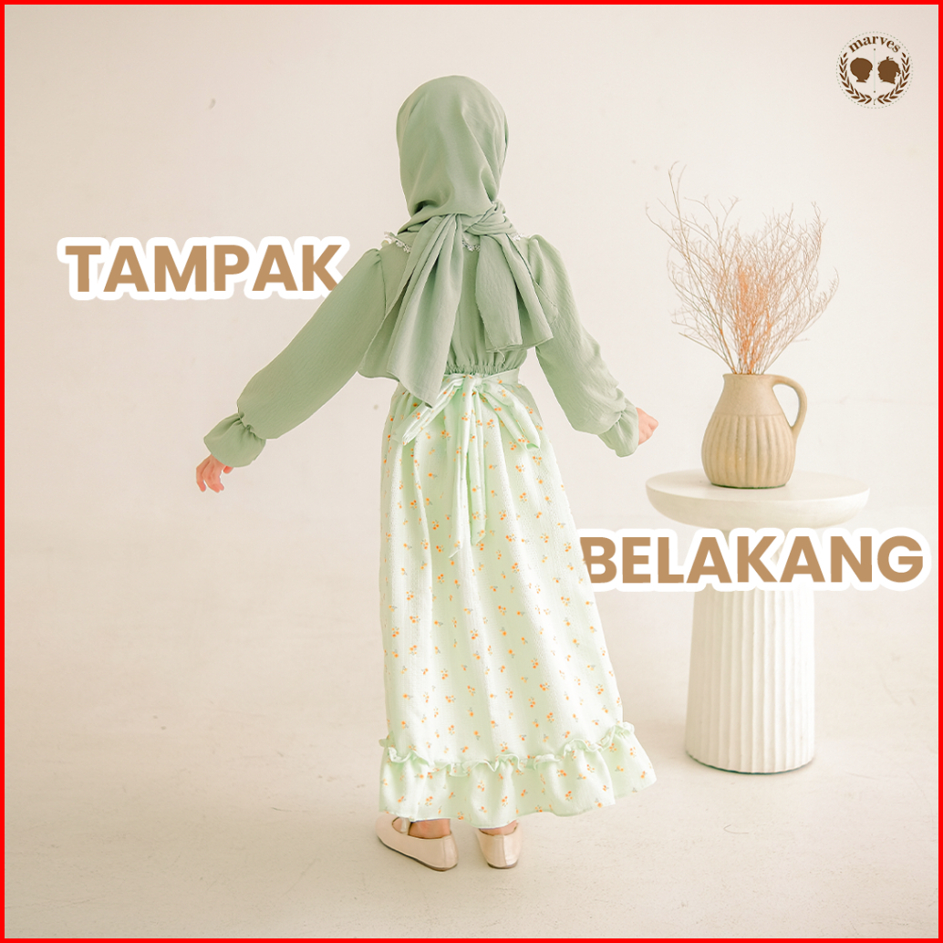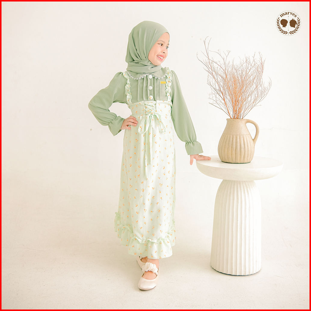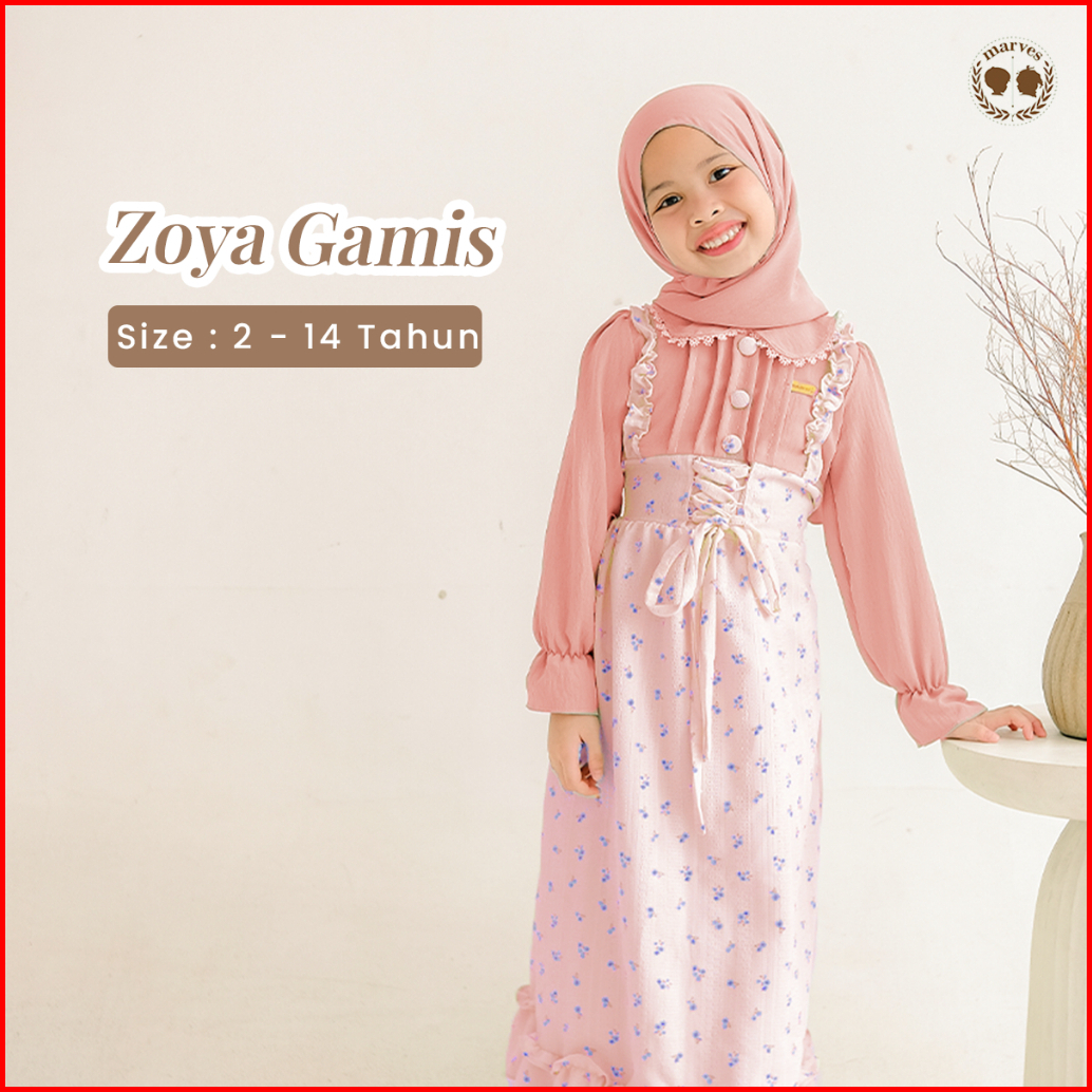 Marves Zoya Gamis Baju Muslim Anak Perempuan Set Hijab Bahan Crinkle Usia 1 Hingga 14 Tahun