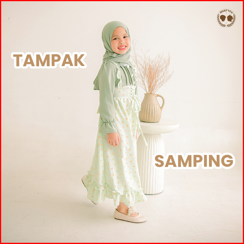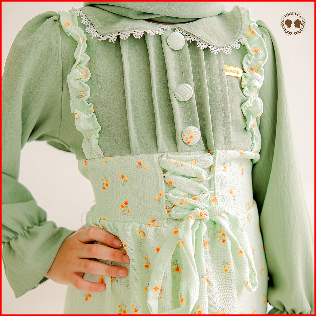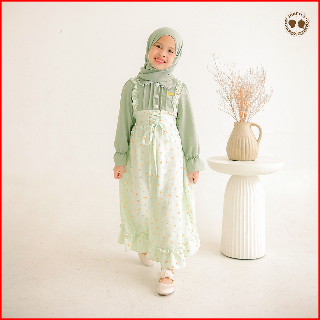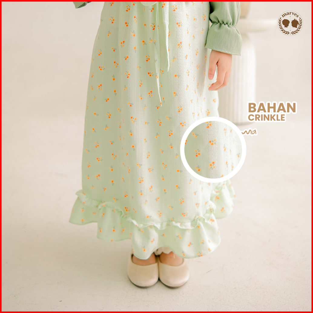 Marves Zoya Gamis Baju Muslim Anak Perempuan Set Hijab Bahan Crinkle Usia 1 Hingga 14 Tahun