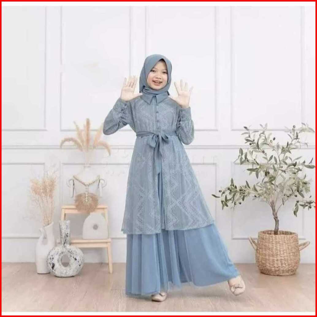 Gamis Anak Perempuan Usia 10-11-12-13-14-15 Tahun Padma Syari Kids Bahan Crinkle Airflow Mix Brukat