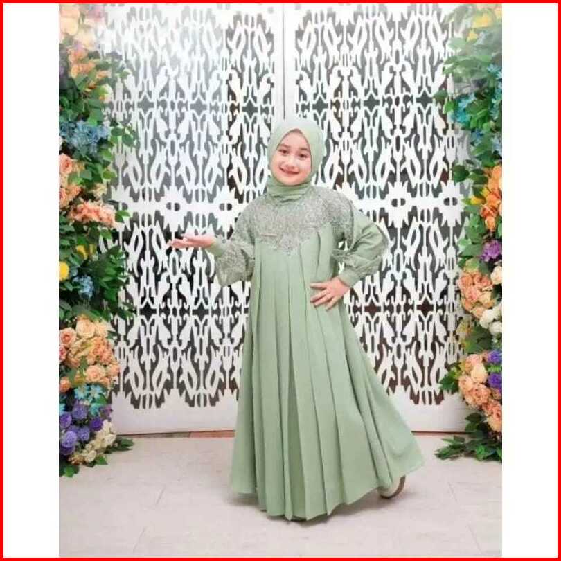 Inara Dress Kids Gamis Anak Usia 5-12 Tahun Bahan Crinkle Airflow Mix Brukat Terbaru Dan Terlaris