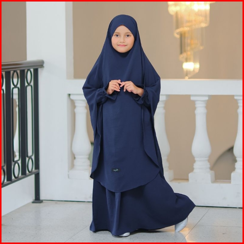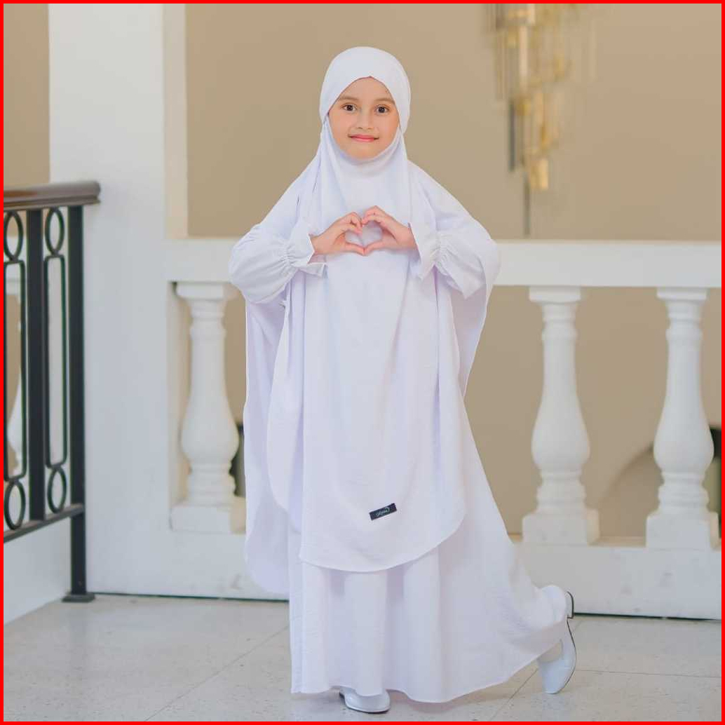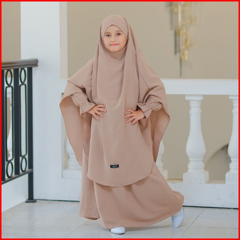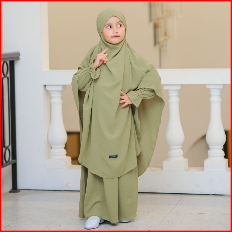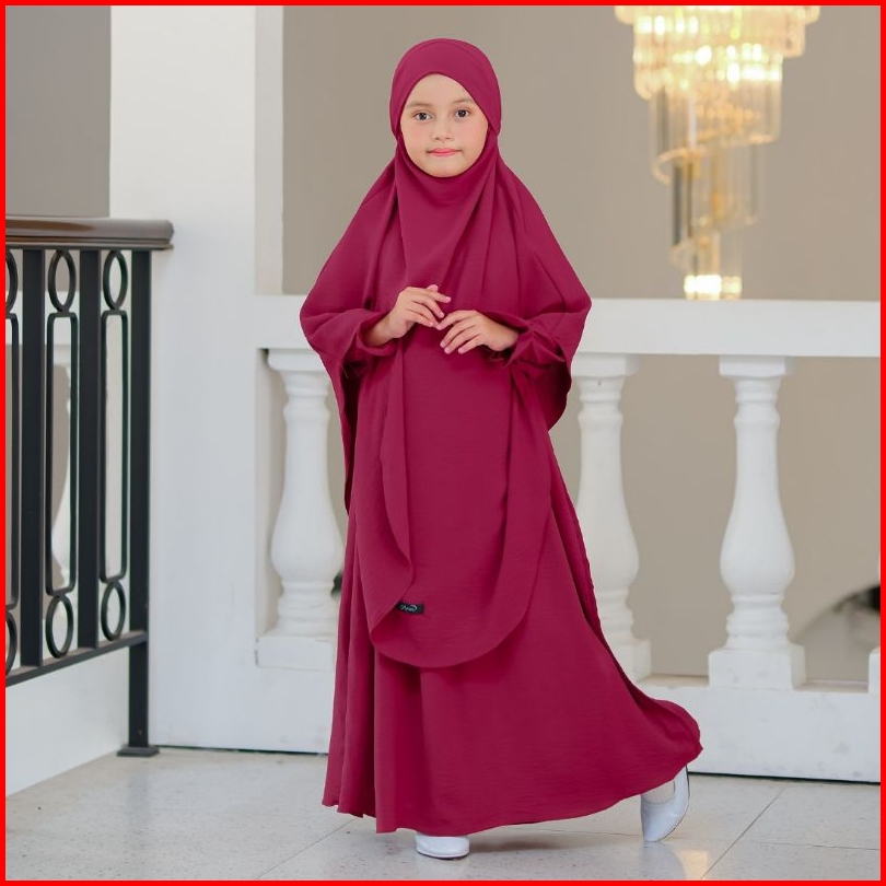 Malano Style - Baju Gamis Muslim Anak Perempuan French Khimar Nabila Set Hijab Syari Usia 3-12 Tahun