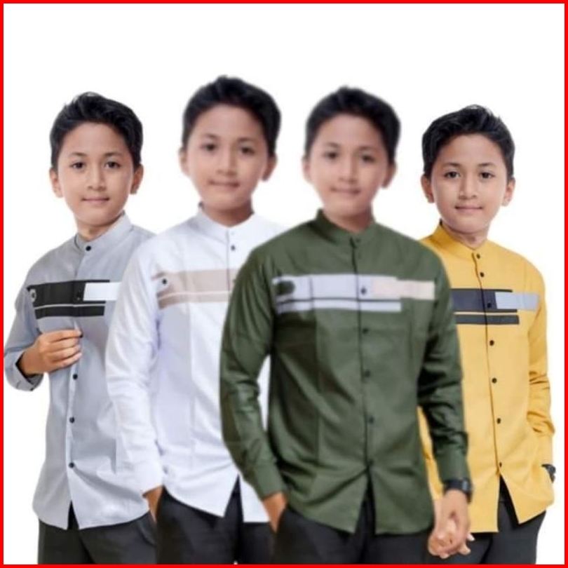 Baju Koko Kombinasi Remaja Anak Laki Laki Usia 7-16thun Sd Dan Smp Terbaru Terviral Bahan Katun Adem Nyerap Keringan