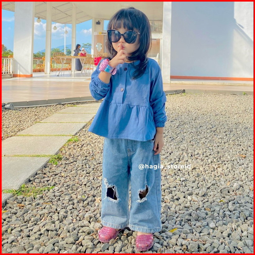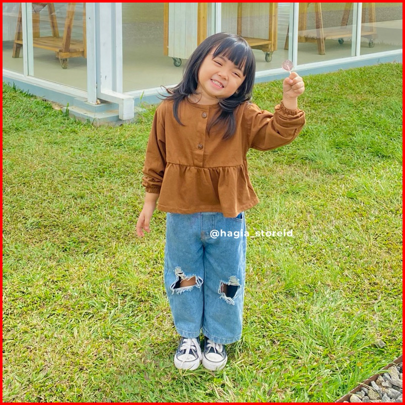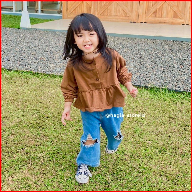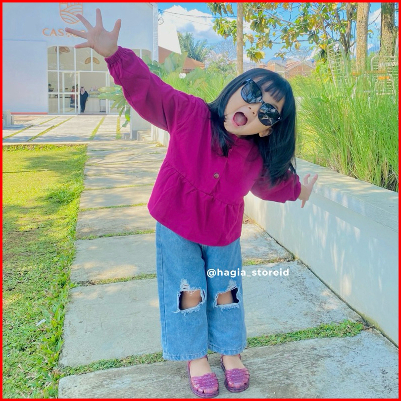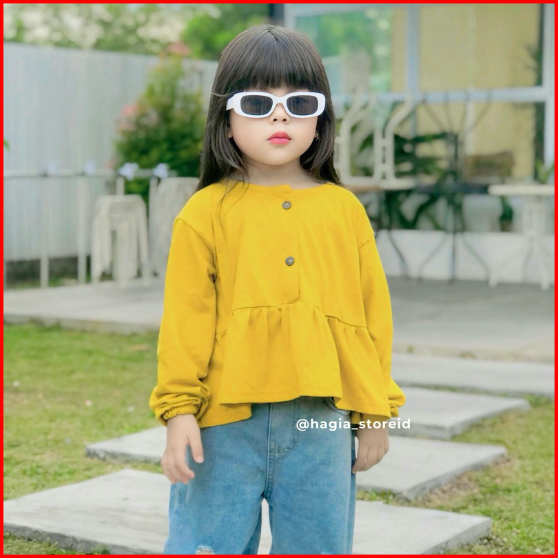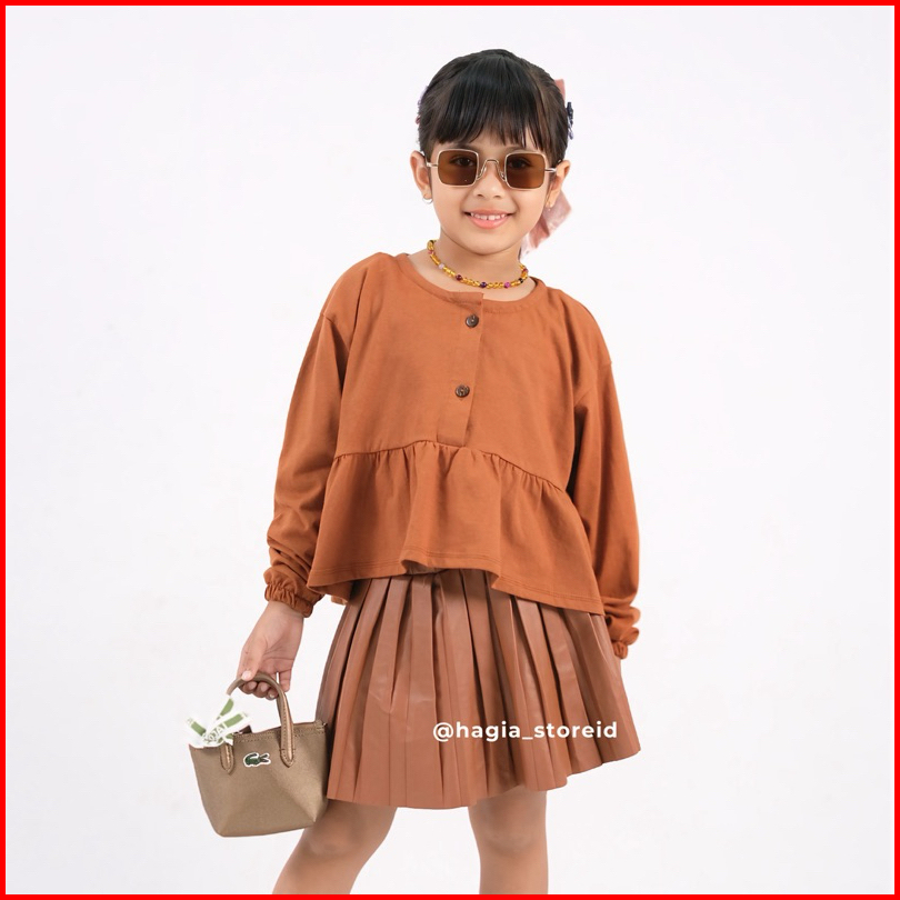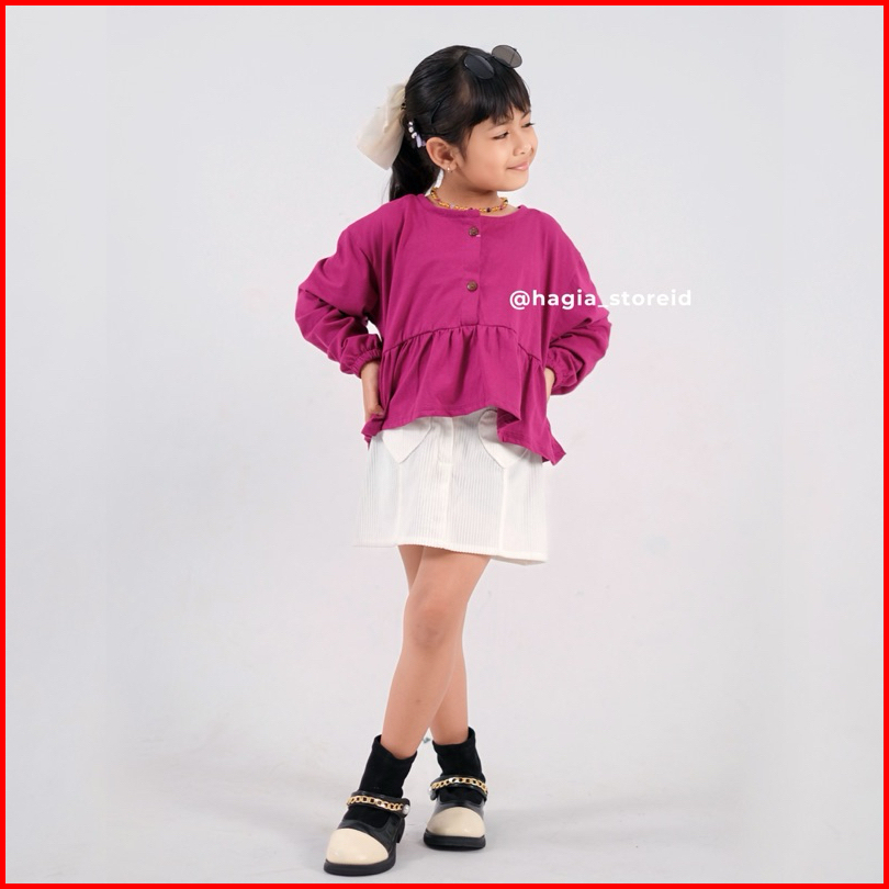 Kyomi Anak By Hagia Blouse Anak Perempuan Blouse Atasan Anak Perempuan Bahan Kaos Model Crop Kancing Dua Aktif