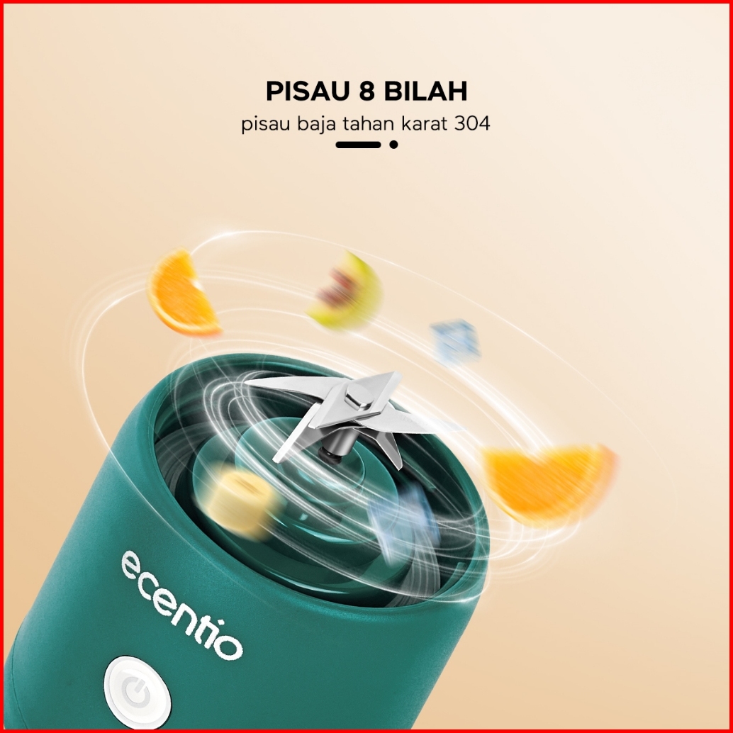 Ecentio Blender 8 Mata Pisau Pembuat Jus Portable Elektrik Juicer Ice Crusher 304 Stainless Steel Dengan Kaca Tebal