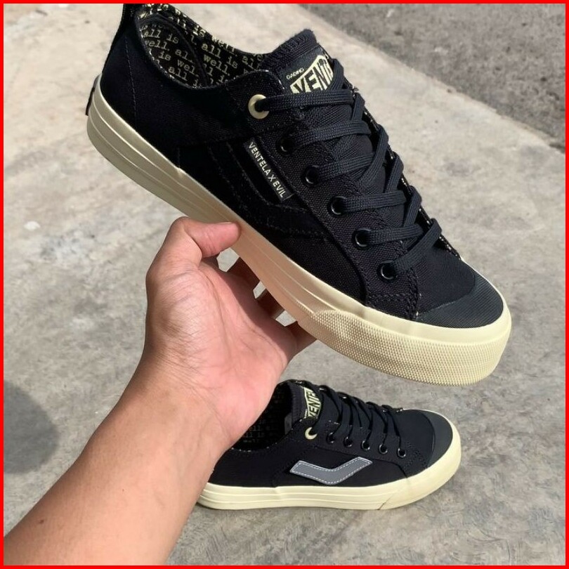 Ventela X Papa Gading X Evil Sepatu Ventela All Is Well Lowcut Black