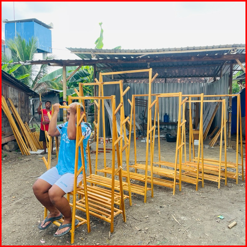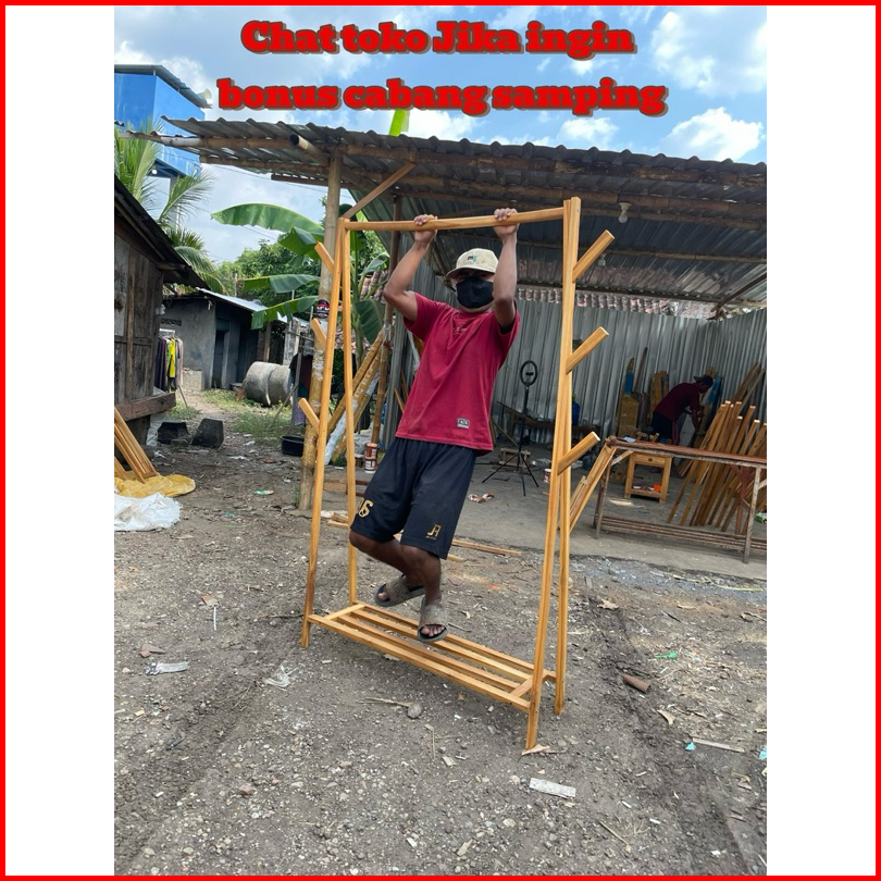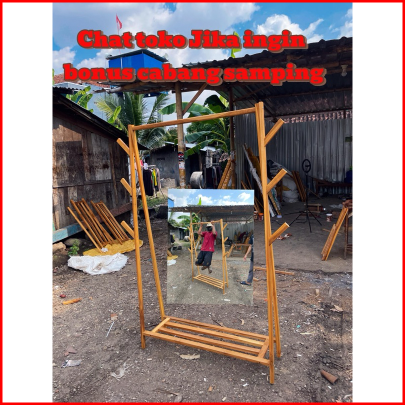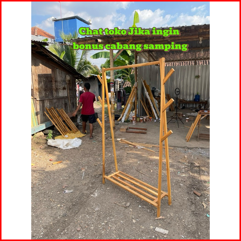 Gantungan Baju Kayu Jati Stand Hanger Rak Kayu