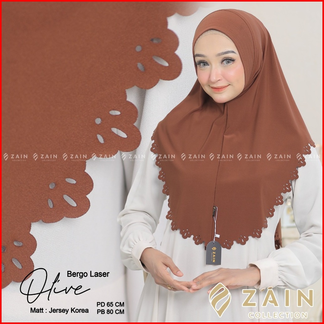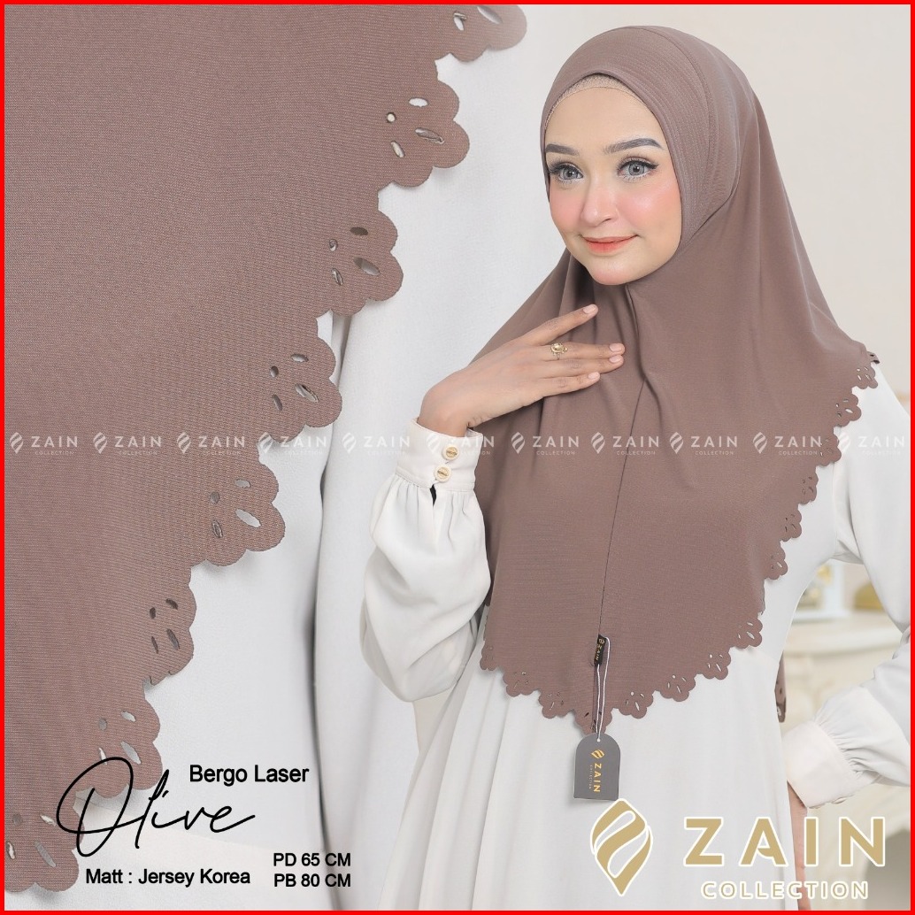 Olive Hijab Bergo Laser Kerudung Bergo Jersey Korea High Quality Pet Soft Anti Tembem Ori Zain Collection
