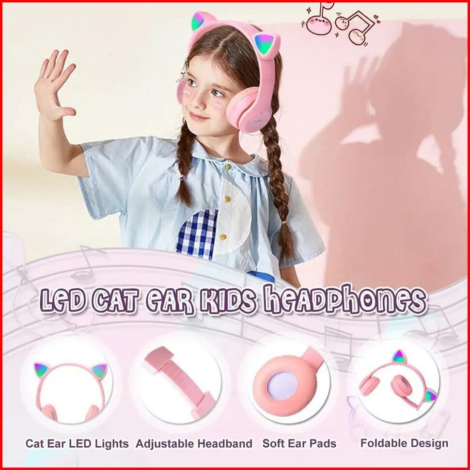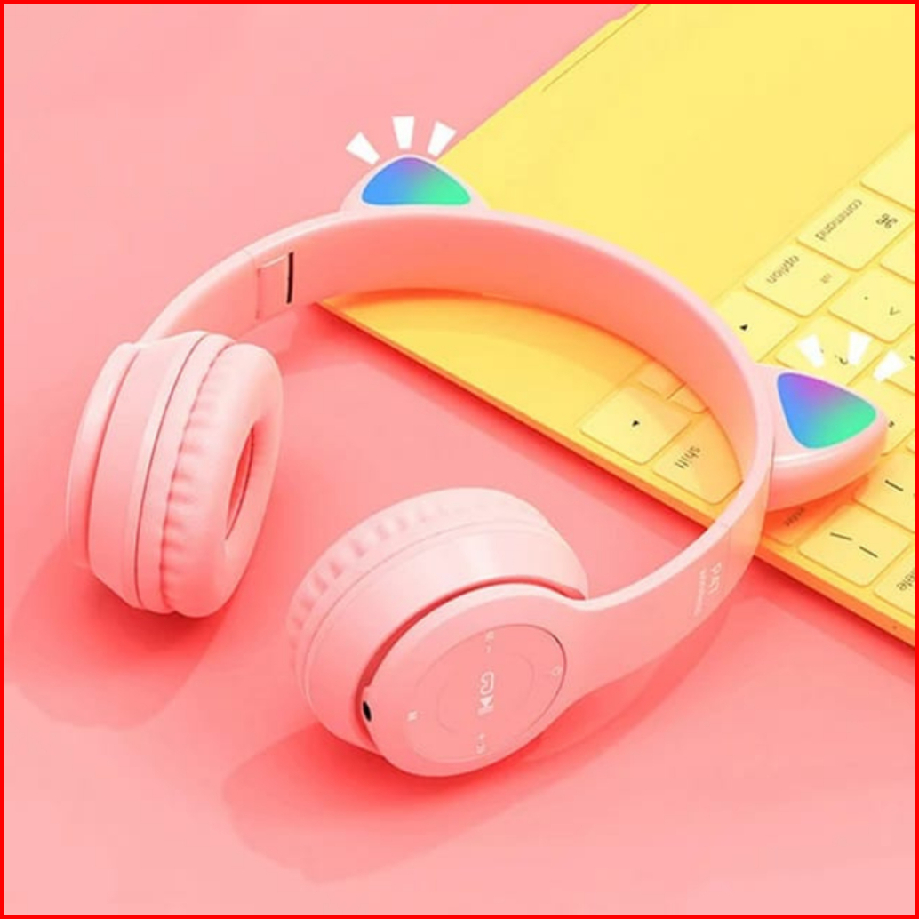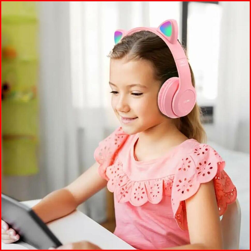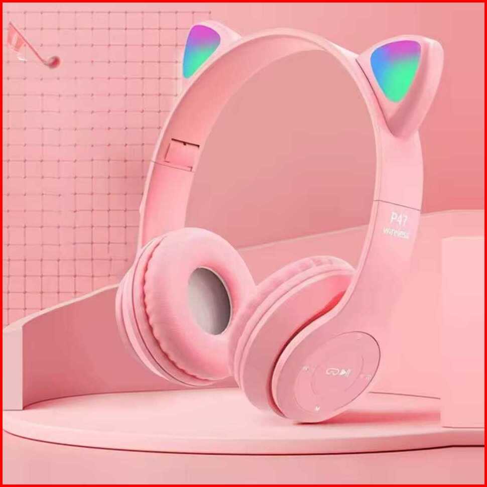 P47m Cute Cat Ear Bluetooth Headset With Led Wireless Headphone Children Girls Stereo Folding Sports