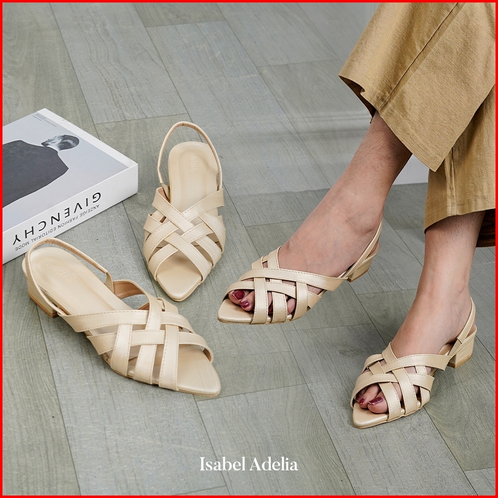 Isabel Adelia Zaria Mules Heels Sepatu Hak Tahu Sandal Pantai Wanita Heels 3 Cm
