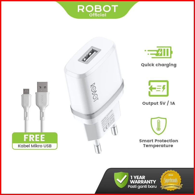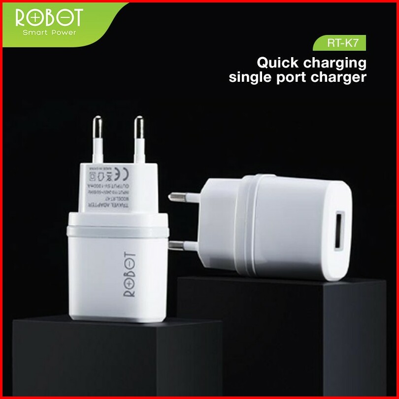 Robot Kepala Adapter Charger Fast Charging 5v Charger Usb Handphone Free Kabel Usb Micro Rt-k7 Original - Garansi Resmi